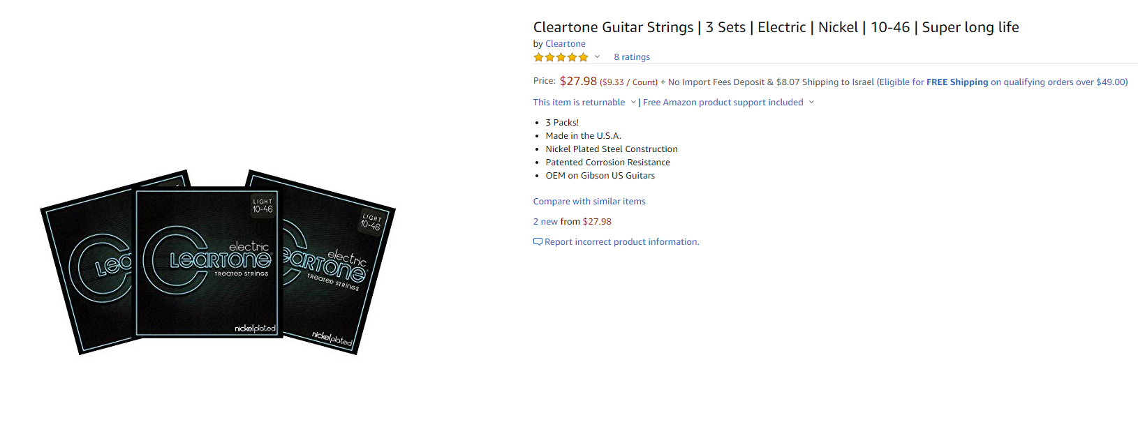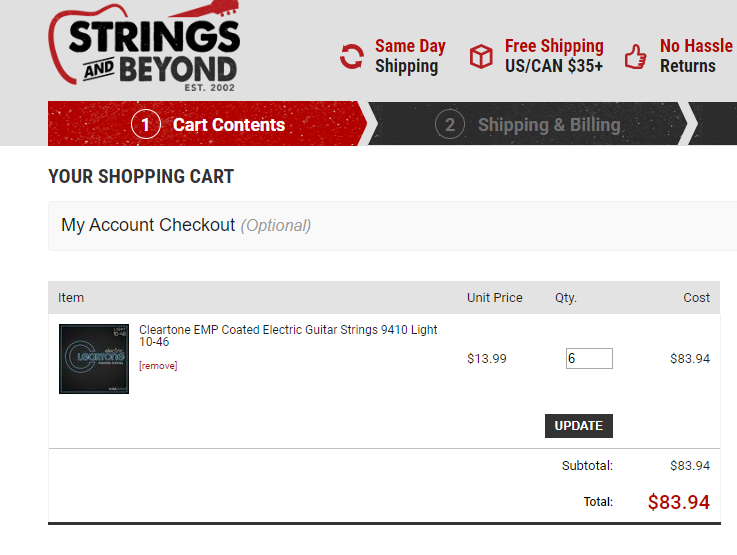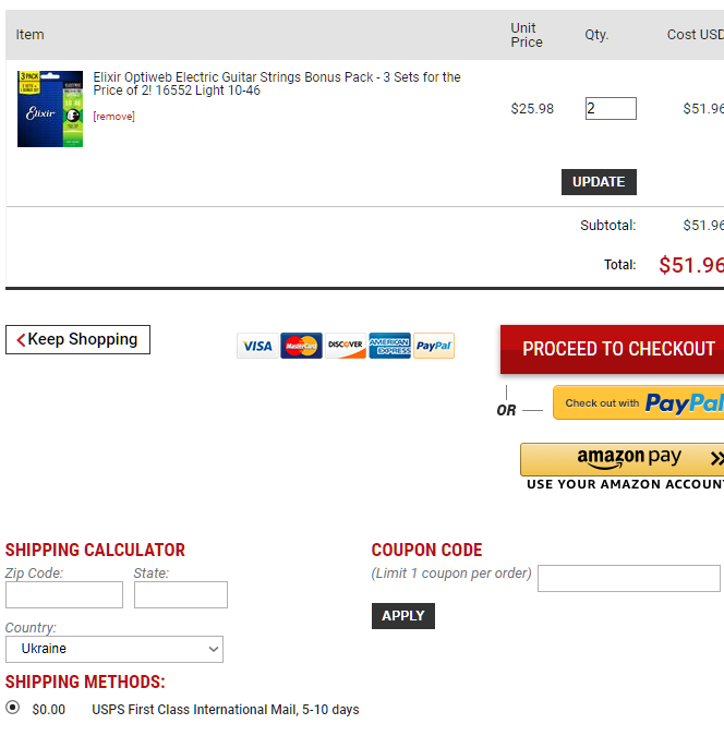 (нажмите чтобы показать/спрятать)вот например я могу купить на амазоне струны если цена заказа больше 49 баксов... то доставка FREE... и добавил:это получается дешевле чем на stringsandbeyond.com ? ... и добавил:значительно дороже (без доставки даже)