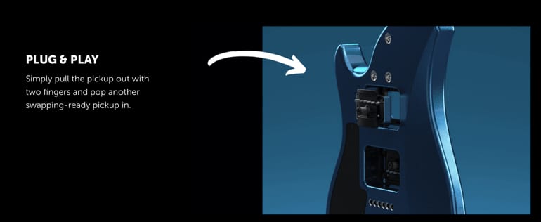 На задней стороне корпуса Relish Trinity располагаются два отсека звукоснимателей. Гитарист может вытащить каждый из датчиков руками — для замены звукоснимателей не нужны дополнительные инструменты. Система работает по принципу plug-n-play (вытащили датчики, поставили новый сет, продолжили играть), а полная замена комплекта занимает меньше пяти минут. Дополнительно разработчики предусмотрели специальный регулятор для настройки высоты звукоснимателей.