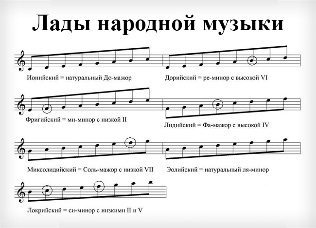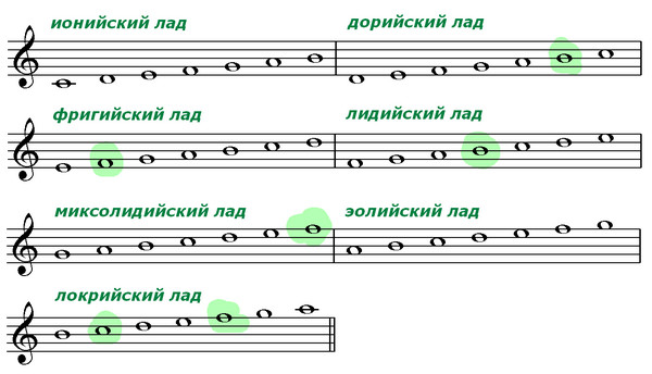 Что, например, Ионийский лад - натуральный мажорный звукоряд,