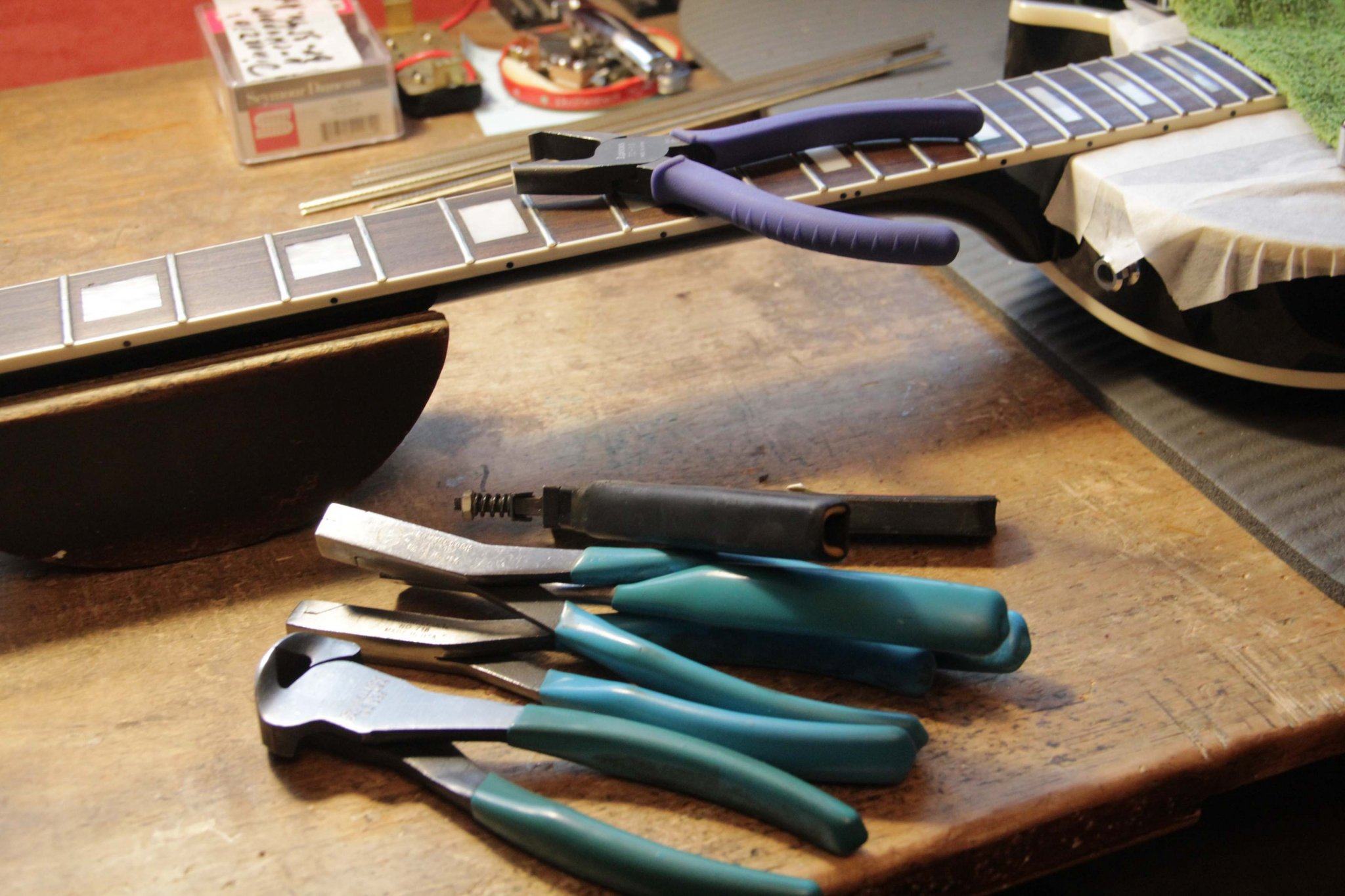 В общем, эту работу я делал больше недели!.. обычно замена ладов требует 2-3 дня, в зависимости от сложности грифа и параллельной загруженности, а не от материала и размера ладов..