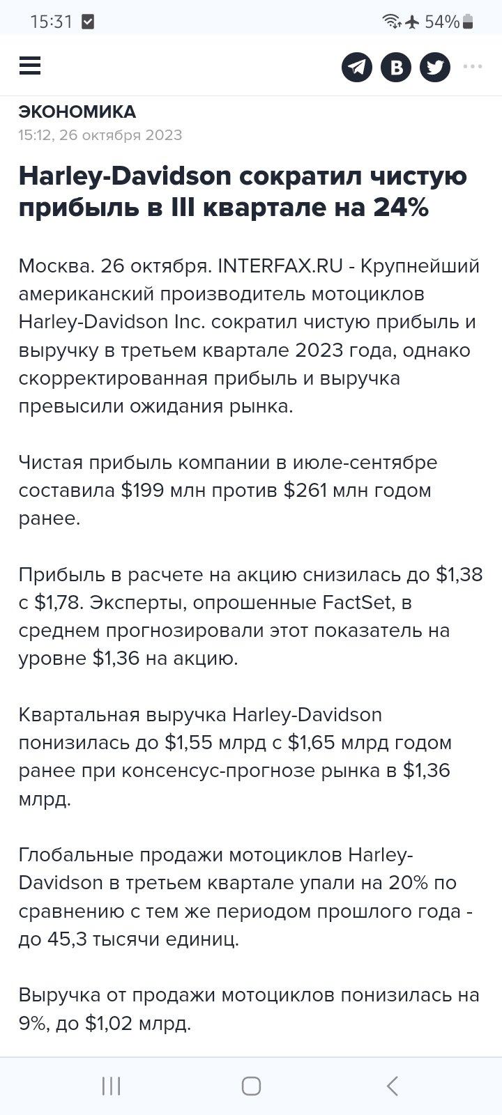 У Харли уже были плохие времена, но вылезли. Сейчас, в эру развития электробайков и грядущего экономического коллапса - скорее всего уже не вылезут.