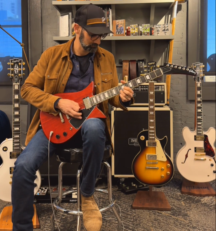 Обычно на такой должны быть фиксирующиеся бридж и струнодержатель TonePros, 490R в неке и 498T в бридже. Ручки такие стояли в стоке. Клен использовался простой, поэтому все цвета были непрозрачные.