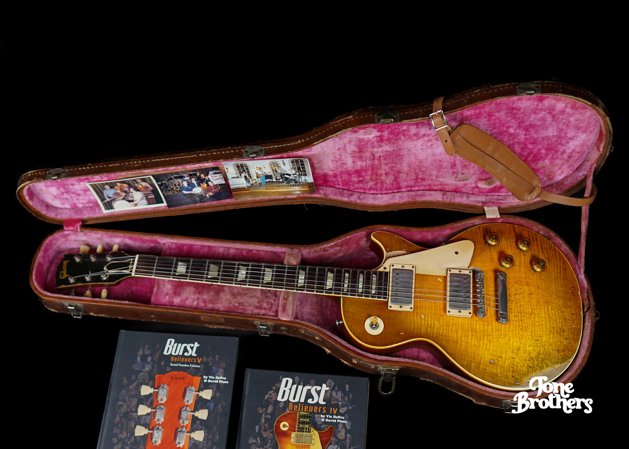 - Важные примечания : Не бывшая в обращении, настоящая жемчужина – гитара Gibson Les Paul Standard "Burst" 1959 года выпуска, получившая прозвище "Céline", с полной историей владения. Мы рады представить вам подлинный кусочек канадской музыкальной истории! Эта гитара была приобретена в Квебеке в 1959 году и с тех пор находится здесь. Первоначальный владелец купил гитару в музыкальном магазине в Квебеке в 1959 году и с любовью и постоянно играл на ней в группе со своей женой Селин (в честь которой гитара и была названа). Эта гитара "Céline" Burst представлена в книгах "Burst Believers IV" и "V". Гитара на 100% оригинальна, за исключением профессиональной замены ладов и репродукций колков (оригинальные колки уменьшились в размере и прилагаются к гитаре). Гитара Céline поставляется в оригинальном жестком кейсе, с ремнем, экземплярами книг в твердом переплете, посвященных этой гитаре, оригинальными фотографиями первого владельца и его любимой гитары Burst на протяжении многих лет (с женой Селин), оригинальными колками... и, самое главное, с неповторимым, завораживающим звучанием Burst! Эта гитара также была сфотографирована в 1970-х годах вместе с Slash Burst (обе гитары были куплены одновременно в одном магазине в Квебеке в 1959 году; одну купил муж Селин, а другую его друг и сосед). Множество дополнительных фотографий доступно по запросу. На этой гитаре так и хочется играть, и она звучит феноменально. Céline Burst весит 8,9 фунтов (около 3,8 кг) и готова к тому, чтобы на ней играли и любили еще 70 лет!