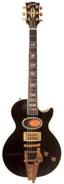 Что же касается черт Les Paul, то они прослеживаются в форме корпуса и в грифе, который целиком выполнен в стиле Gibson. Хотя и тут есть своя странность. Голова грифа копирует головы грифов Les Paul Custom - это касается и ромбовидной инкрустации и самой формы. В то время как накладка на гриф выполнена в духе Les Paul Standard - это касается и материала (палисандр) и маркеров (их форма и количество). Гитара была сделана в 1991 году. Ее официальное название Malcolm Young Hollow Custom Les Paul.