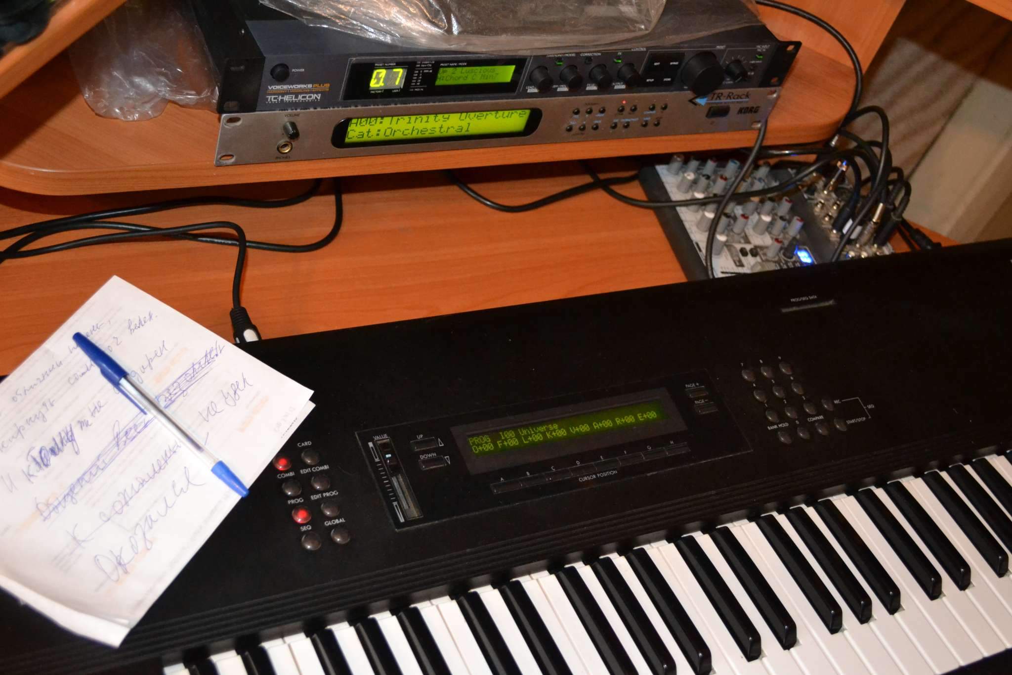 Был и РА500, но не вдохновился я хорошей самоиграйкой. Еще был Korg Radias - отличный апарат! Но в итоге и с ним расстался - захотел исполнить детскую мечту, и купил Access virus c. Хорошая машина, да, но в том же рэдиасе по два эффекта на тембр, плюс два мастер-эффекта, а в Вирусе с этим туго. Грубо говоря, три эффекта на его 16-ти частную мультитембральность, и крутись как хочешь. В итоге продал и его и прикупил себе примерно то, что хотелось давно - а именно Korg M3. Тут тебе и ромплер, и сэмплер, и секвенсор, надо еще плату расширения прикупить - и внутри появится почти полноценный Рэдиас! (Нет арпеджиатора и процессор эффектов уже от М3)