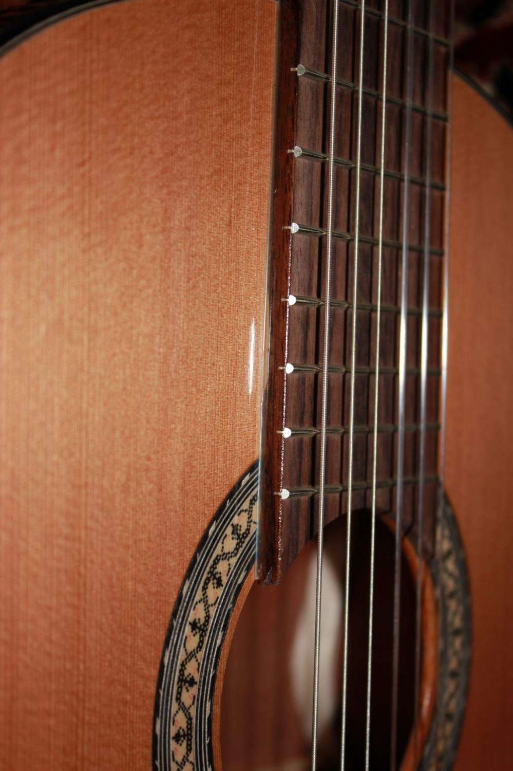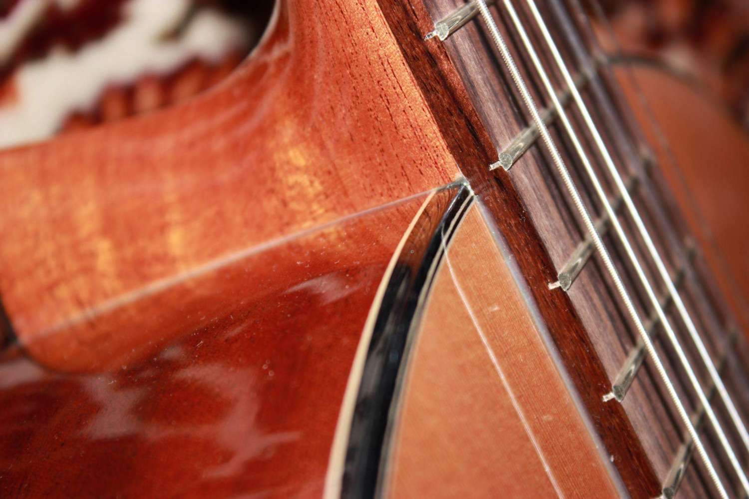 встречается такое "помутнение" лака на стыках склейки в чем причина не знаю такое и на новых инструментах случалось видеть