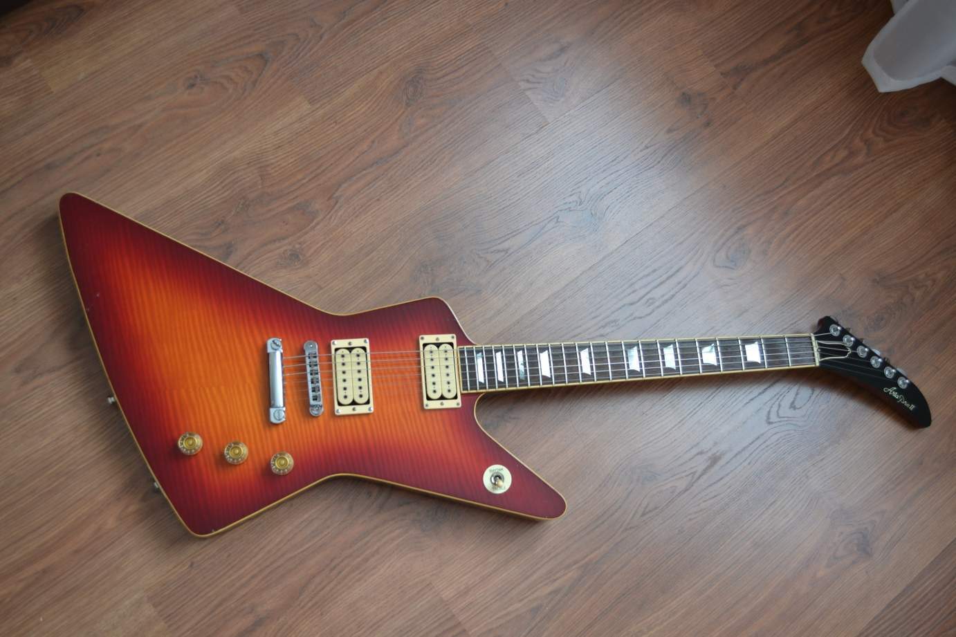 Звук: К сожалению семплов дать не могу. Звук без отсечки чисто Эксплоеровский. Сталкивал в студи на хорошем аппарате с gibson explorer 2009 года, ситуация примерно такая как в видео(Aria Pro 2 Explorer Vs Gibson Explorer), за одним исключением. Обозреваемая гитара сделана полностью из красного дерева, да еще и имеет на борту кленовый топ и шикарнейшие звукосниматели. В следствии чего она полностью разорвала оригинальный эксплорер 2009 года. Звучит намного более широко, напористо. На современном аналоге не хватает мощи, звучит он как-то более скудно и плоско. Проигрывает в сустейне. Часть превосходства этой гитары возможно и кроется в почти 40 летней просушке материала, но как по мне ,то и дерево в ней подобрано удачнее(корпус сделан из одного куска краснухи), так и само качество сборки намного выше. И пожалуй самое интересное конструкционное отличие, Long Tennon. Для тех кто не в курсе-глубокая вклейка грифа, превосходство сустейна скорее всего кроется именно в этом. С отсечкой можно накрутить много интересного, но все же не все, телекастера не получится. Гитара звучит точно так как был задуман настоящий Explorer- Блюзово, очень глубоко тепло и насыщенно. Многие думают что Explorer это чисто гитара для тяжелого рубилова, но могу со 100%-ой уверенностью что это огромное заблуждение.