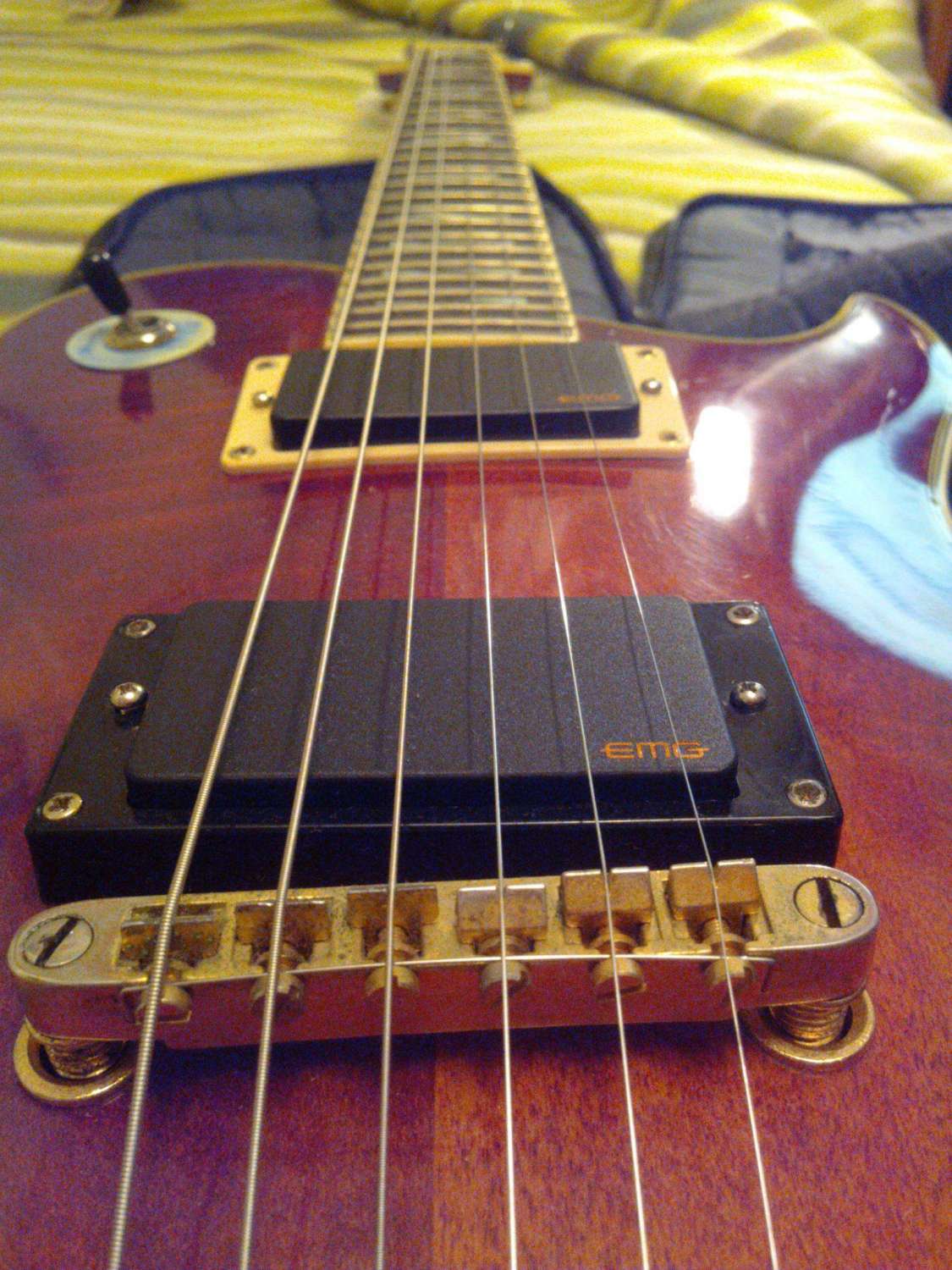 Хоть родные звучки и порвали местную банду америкосов, висевших на стене того чудного магазина, все же их я заменил. Заменил на связку от EMG- 81 и 89. 89 походу заменил неверно, подключил как и 81-й, просто, в общем, отсечки не чую, т.к. пушпул при выдергивании ничего не дает, но сильно меня это не огорчает- пофигу, звук мясной. Припечет- переделаю, что там- пины местами поменять, лень.