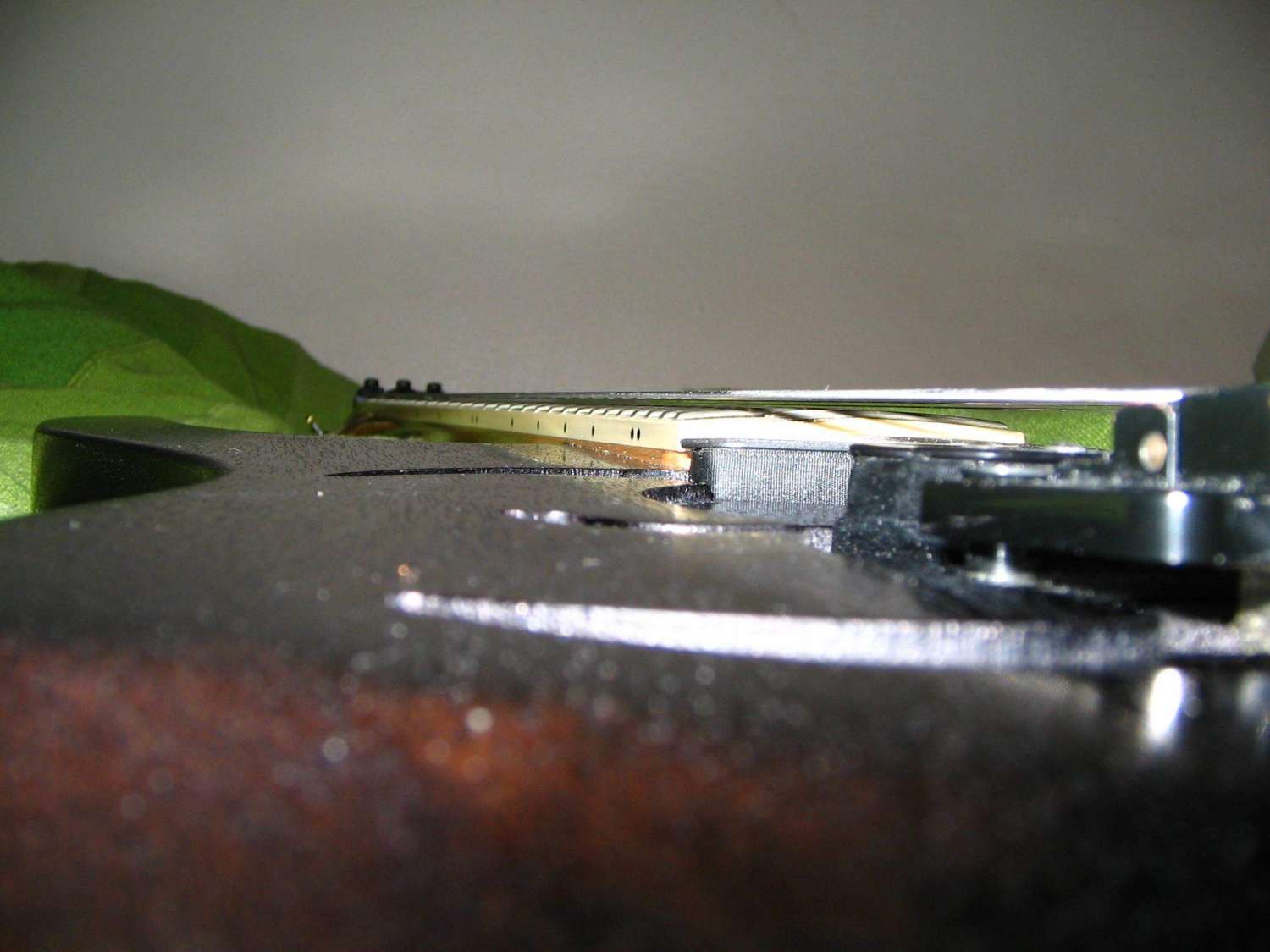 Не, не, замерял от основного корпуса, не от дна яблока. Гриф идеален, струнки лежат низко, ничего не ладит. НО, я так понимаю это спецальная такая конструкция, видел график где-то. Гриф посажен не прямолинейно корпусу, а с некоторым отклонением в низ. Это я так понимаю увеличивает ход флойда назад. И из-за этого невозможно опустить его,хотя запас по винтам доаольно большой. То-есть его можно спокойно утопить, но тогда струны лягут на гриф.