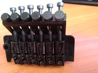 Первые впечатления от Готох: Рычаг наворачивается, а не гайкой прижимается. Винты прижимающие струну длинне, поэтому в боди с утопленным тремоло может не влезть (да можно конечно их отпилить,но...) Упоры для ножей конечно пришлось оставить родные от джексоновской машинки, готовские меньше по диаметру, и сами стойки выкручивающиеся не совпадают по резьбе. По сравнению с шаллеровскими ножи заточены под другим углом, вобщем тупее. По звуку хз, норм, по стабильности норм. Пружины идущие в комплекте понравились, их достаточно 2 для 9-46 в E. Винты микроподстройки под углом- мне кажется их проще сбить рукой. На внешность...Шаллер мне больше нравится, хотя тут вкусовщина- просто привык. Но если при прочих равных то выбрал бы шаллер мне он больше нравится в целом.