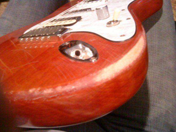 лак если честно не помню. по моему обычный полиоретан, но оч тонкий слой. поры дерева из под него видно все. в смысле поверхность корпуса не глянец.