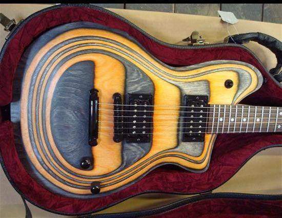 Совершенно случайно наткнулся на этот замечательный инструмент, сделанный в духе фанерно-разноцветных гибсанов, которые недавно обсуждались на форуме, применена таже разноцветная березовая фанера.