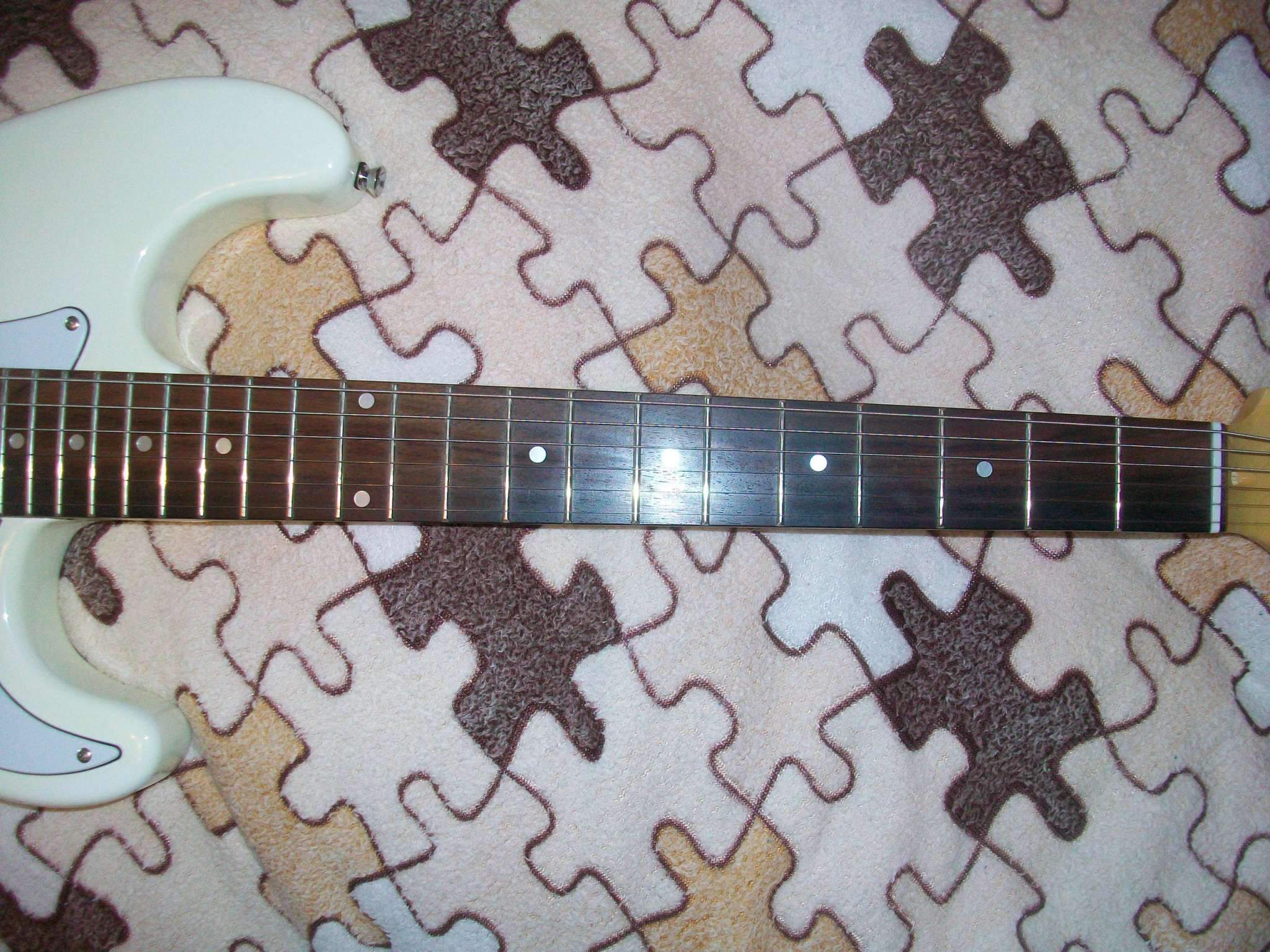 И, это - звучки Noiseless в совокупности с шестивинтовым тремоло и 21-ладовым грифом? Бред. Само тремоло кривое какое-то. Про точки на грифе уже сказали. Колки системы "Кетай".