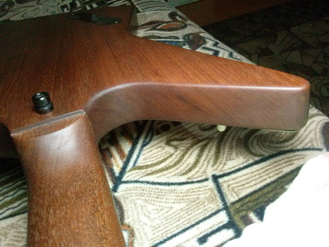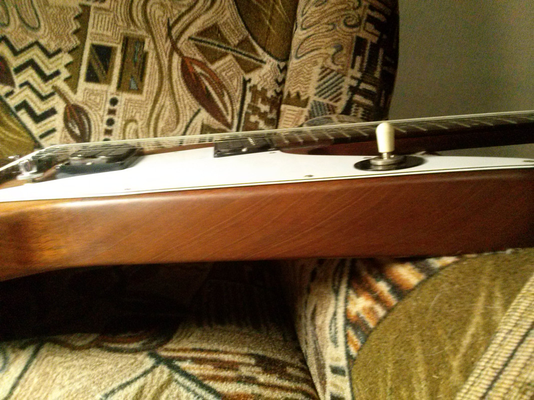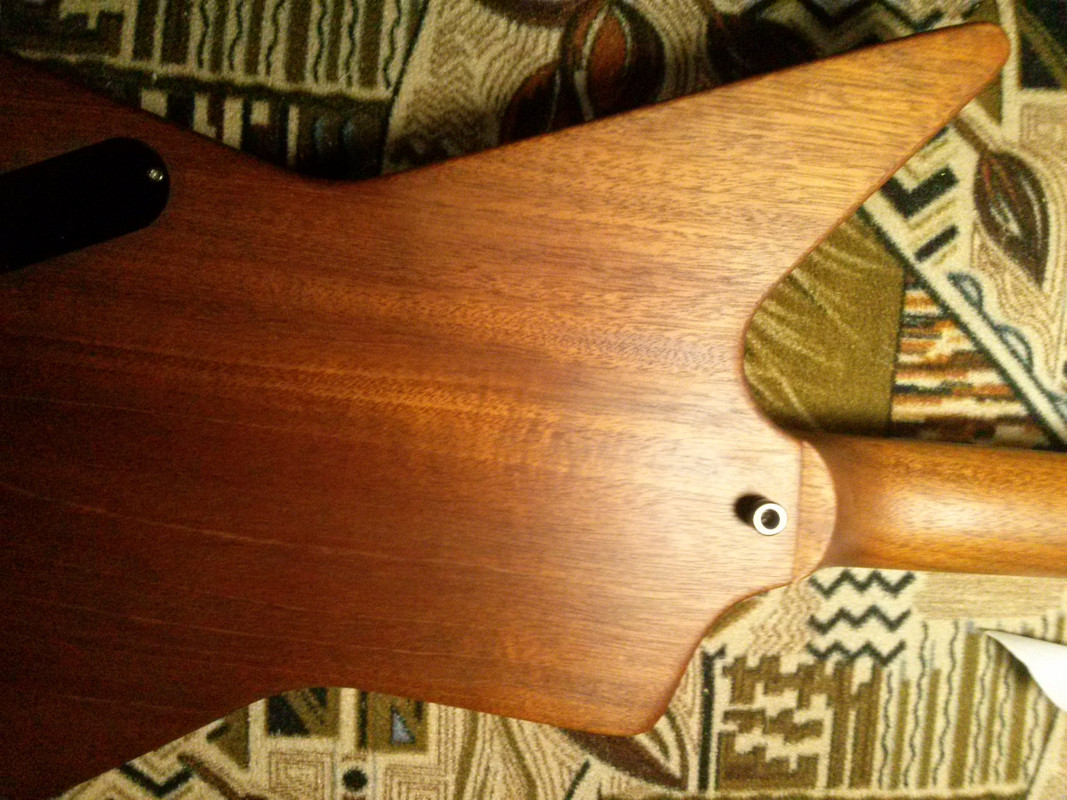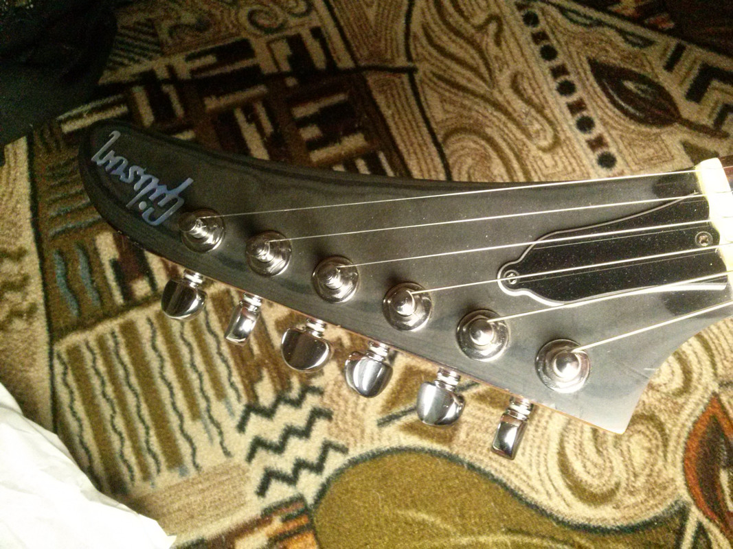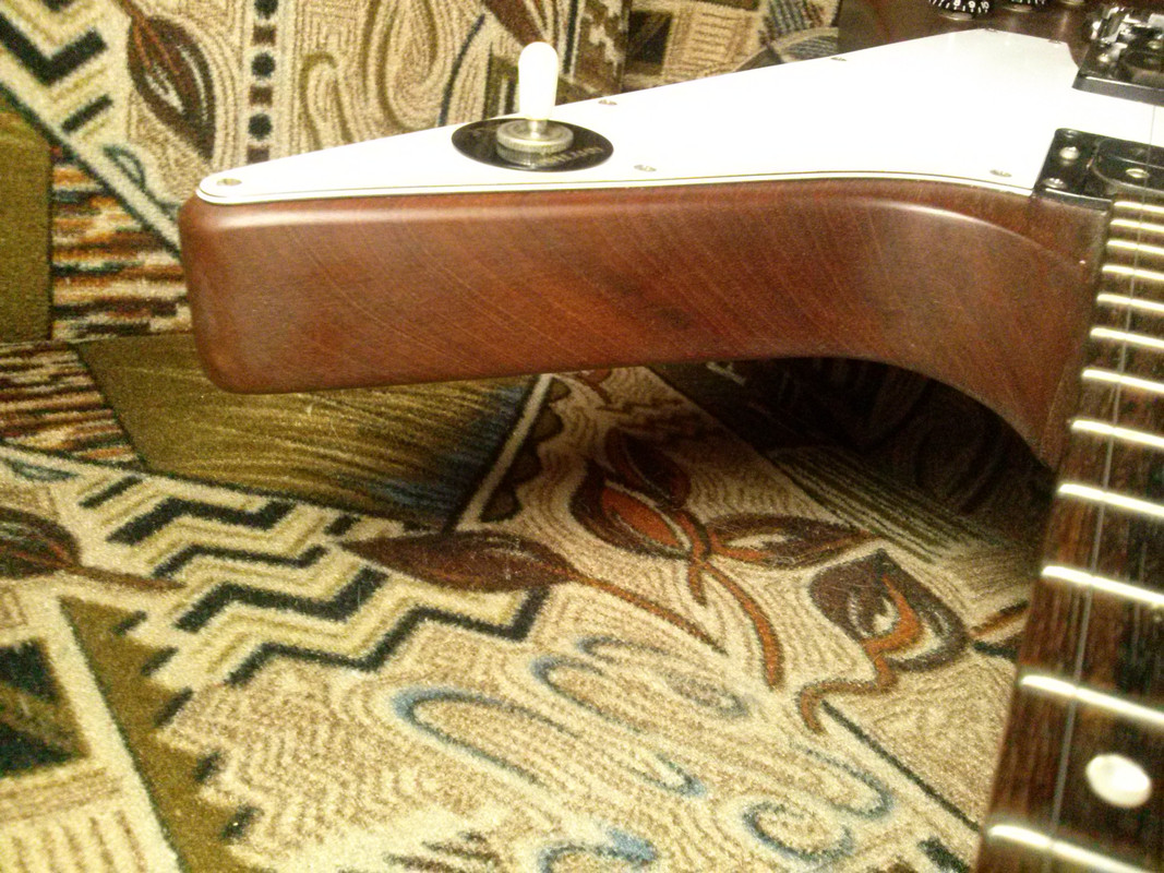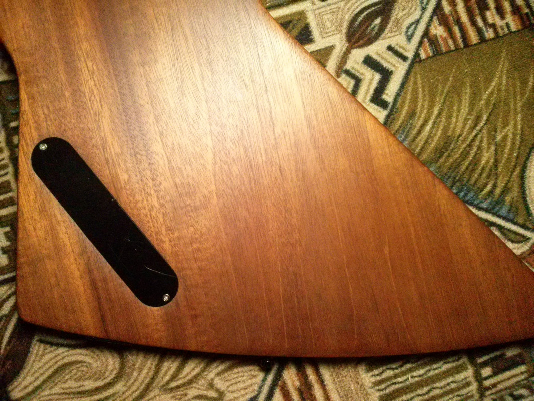 • Body & Hardware: Korina (African limba wood) body (mahogany from 1975, some Korina 1976, alder 1982-84, mahogany from 1986), elongated upper treble bout and lower bass bout, Tune-o- matic bridge, stop tailpiece, optional vibrato 1981-89, white pickguard (no pickguard 1984-89).