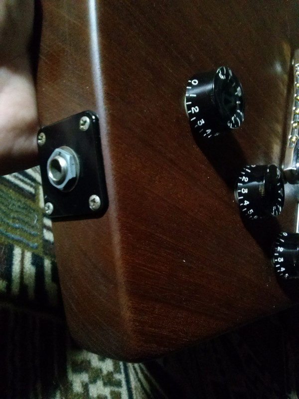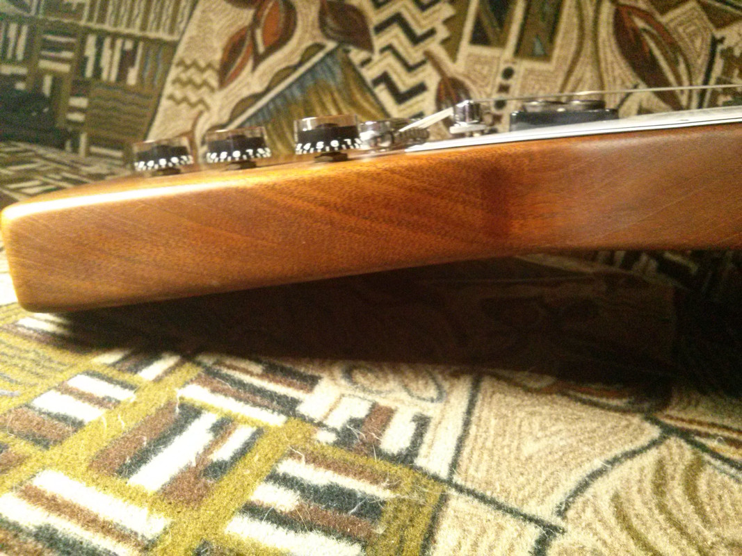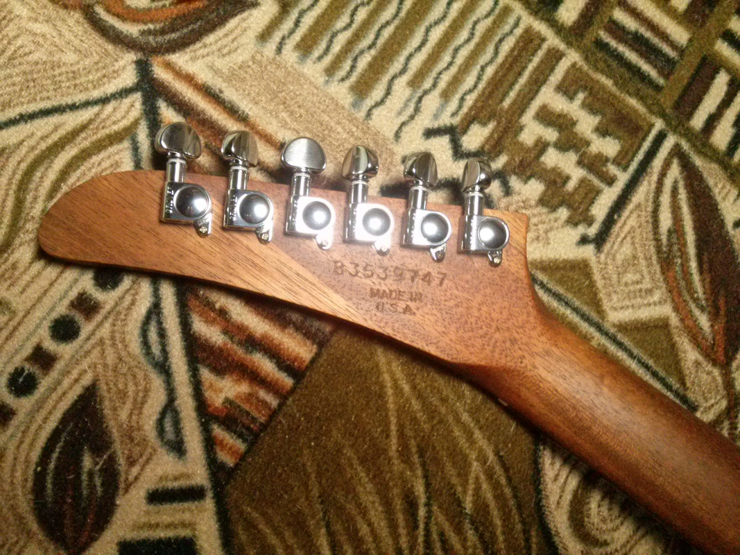 • Neck: unbound rosewood fingerboard (ebony optional 1983-86, ebony 1987-88, rosewood 1989, ebony or rosewood from 1990), dot inlays, scimitar-shape peghead curves to treble side (a few early with forked peghead), pearl logo (decal 1981-89).
