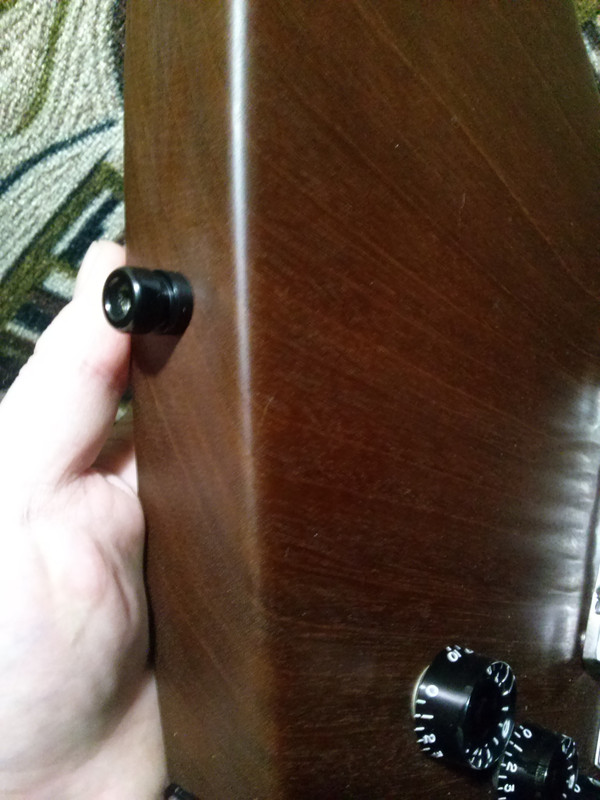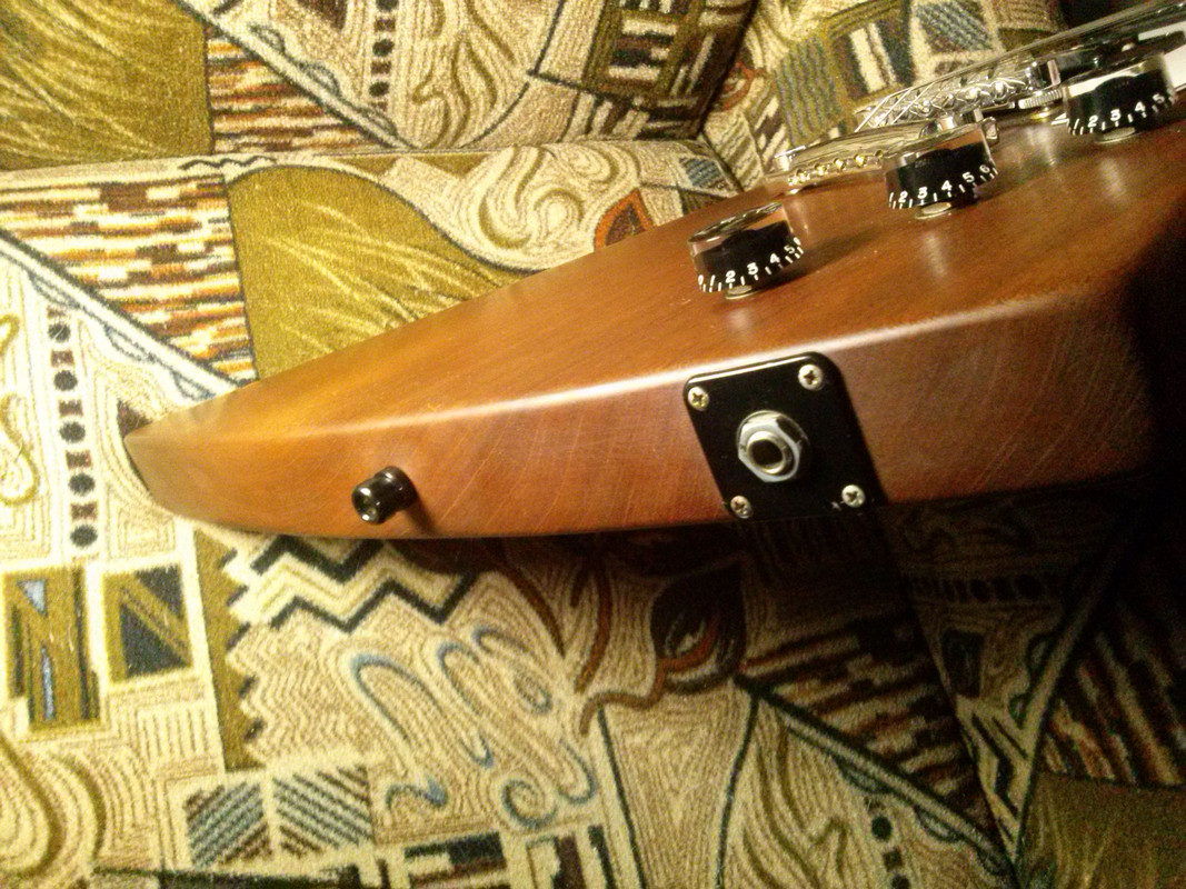 • Pickups & Controls: 2 humbucking pickups, 3 knobs in straight line, selector switch on treble horn (knobs in triangular configuration, switch near knobs 1984-89, in straight line from 1990).