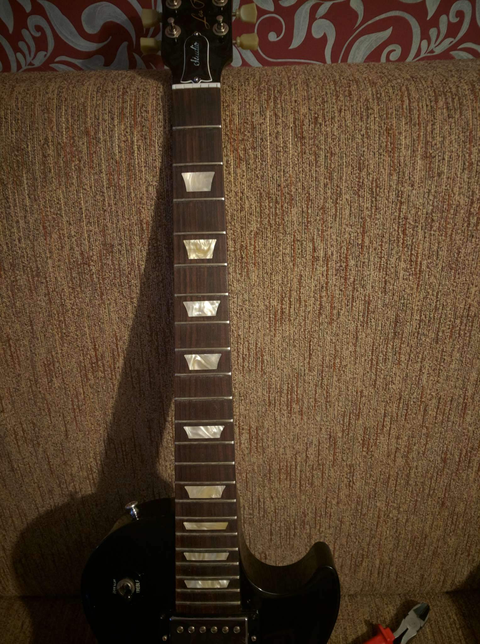 накладь палисандр, по продажным фоткам там было непонятно рыжуха какая то.