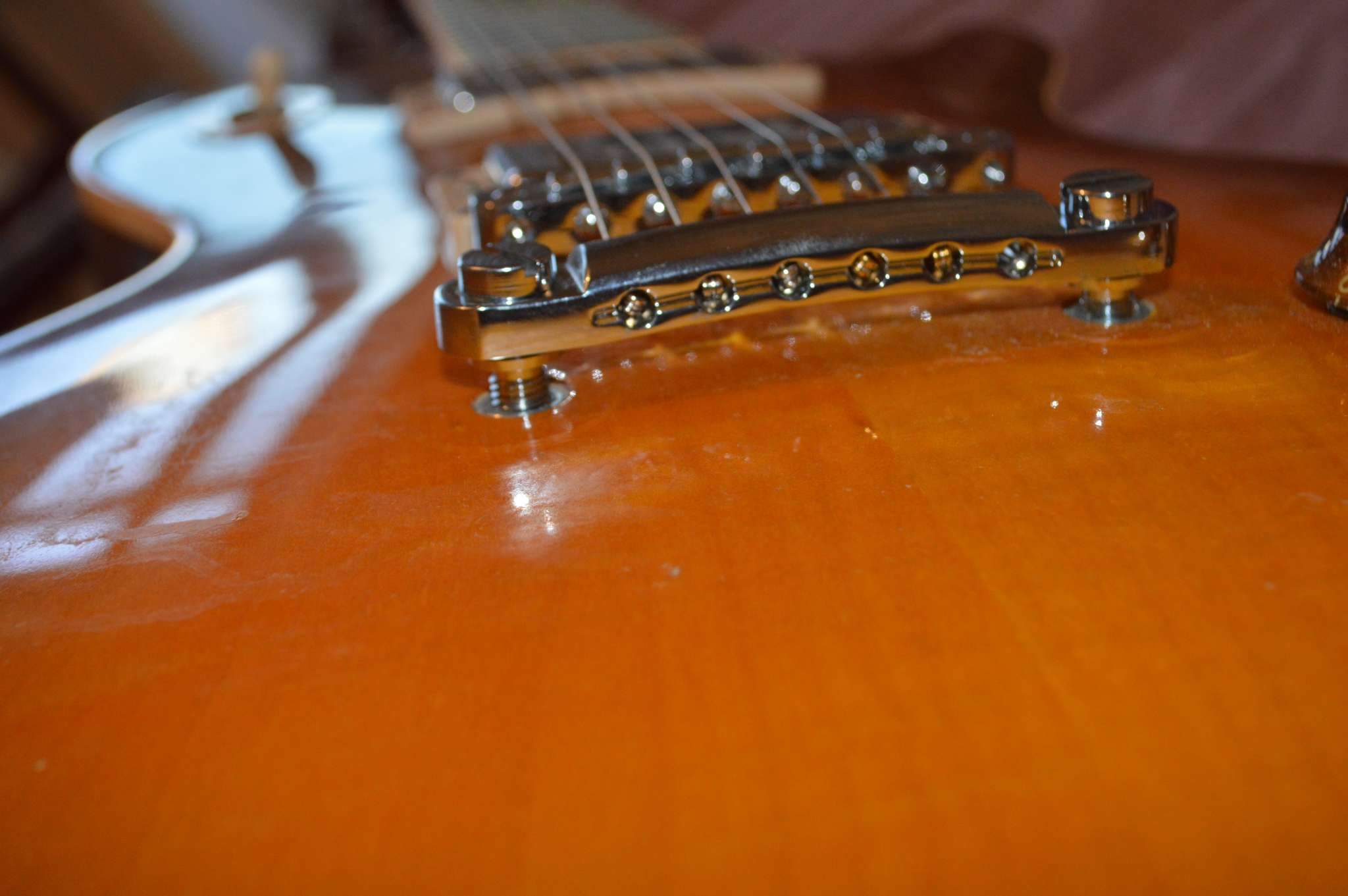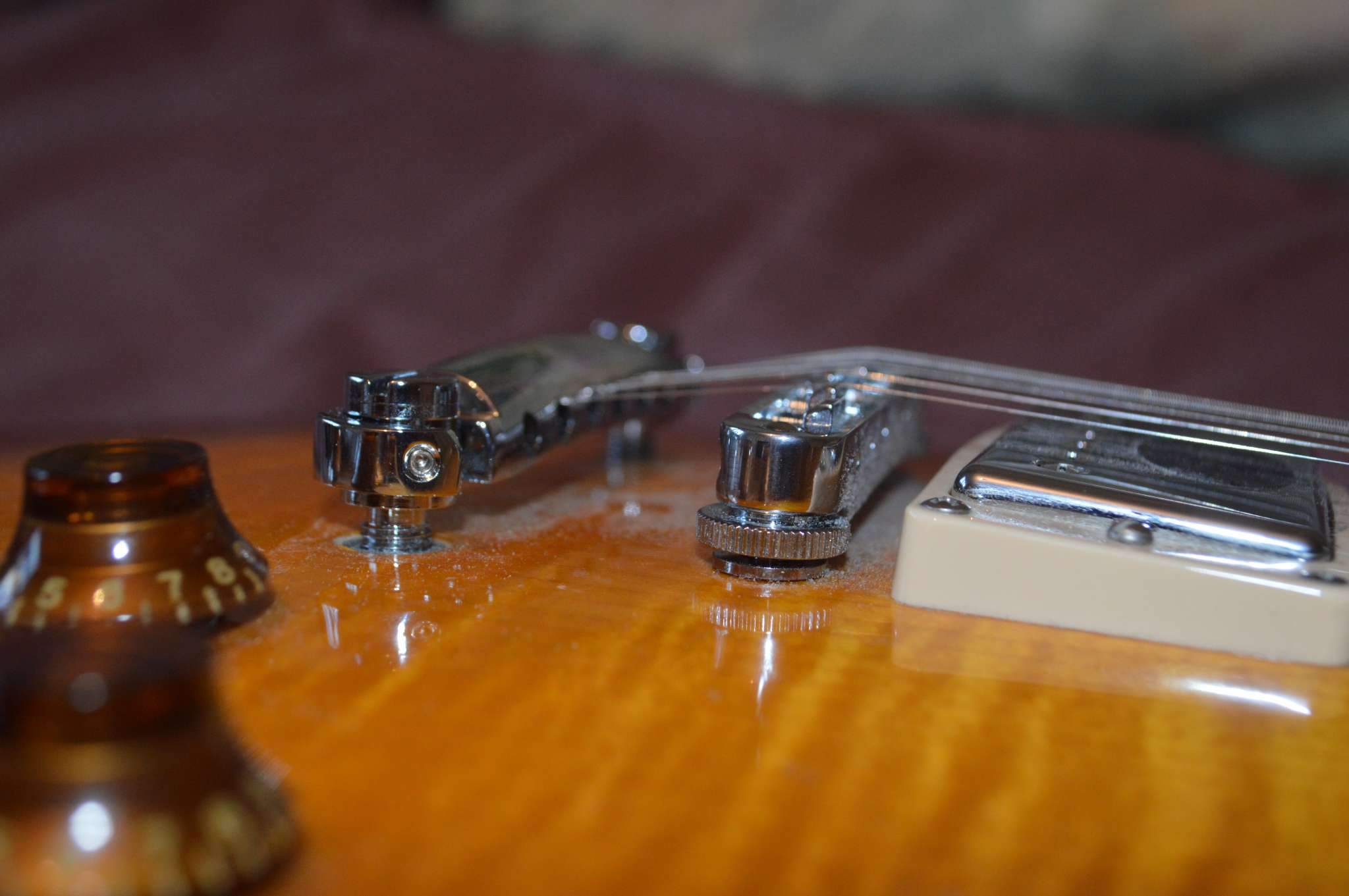 У меня щас не касаются бриджа, при смене струн поставлю свой обычный калибр струн для ЛП 11-50 и вкручу стоптейл до упора, будут касаться, и даже лежать, но пофик, так звук лучше, по опыту знаю