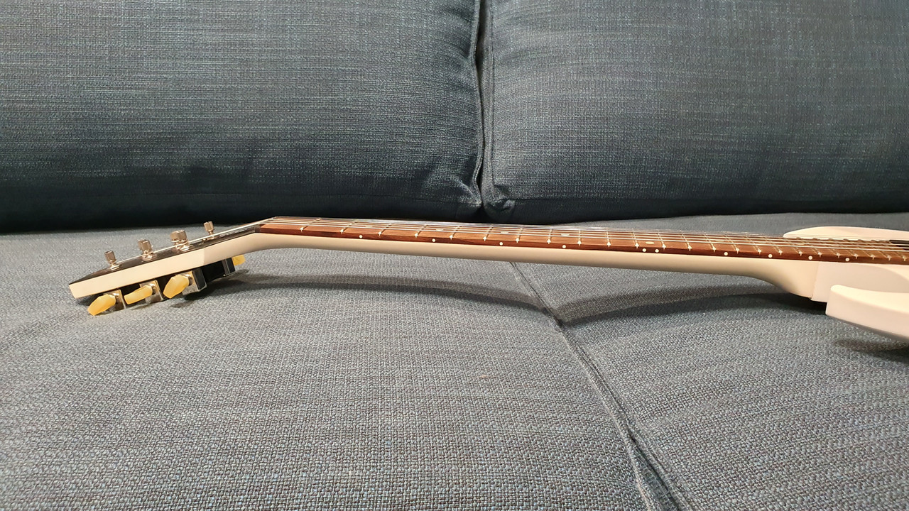 С интересом захрустел. Вообще белый цвет люблю у гитар, особенно в сочетании с тёмной накладью на грифе , а для СГ это наверное самое выгодное цветовое решение.