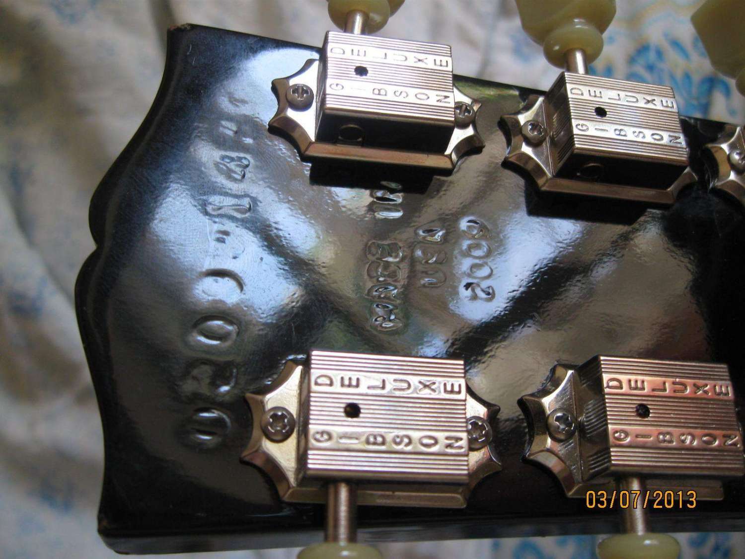 Вогран, обыкновенный SG Special с обыкновенными для Гибсонов косяками... Номер читается хреново, т.к. его сперва на дереве штампуют, потом лакокрасочное покрытие наносят сверху. На серии Faded читается лучше, т.к. там слой покрытия тонкий. А на белых Гибсонах вообще практически нечитаемый, т.к. белое покрытие еще толще обычного.