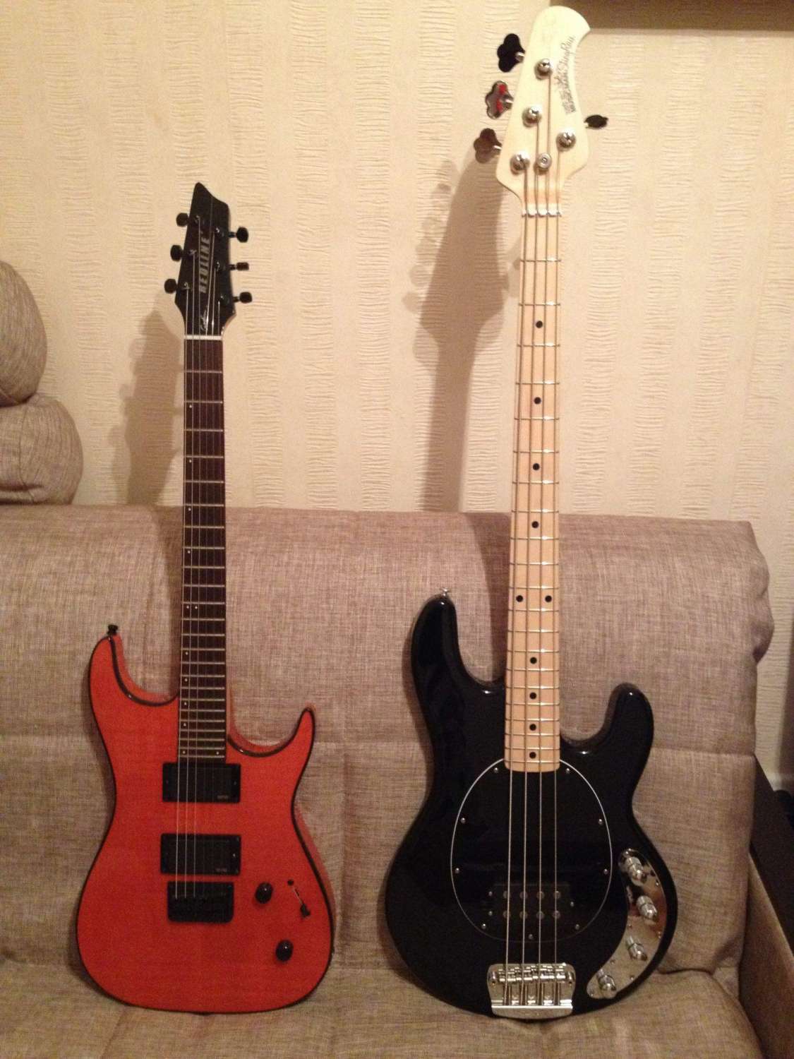 Обычно на гитарах "лады растут". У той что справа гриф вырос. Поливаешь слишком часто.