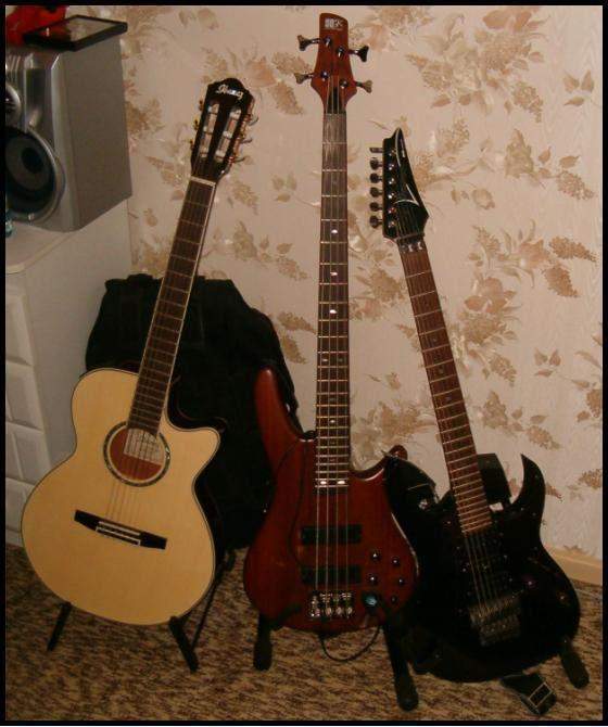 Мой бывший Ibanez RG570 '93 в компании электроакустики Ibanez V70CE и старого баса Jolana Iris Bass