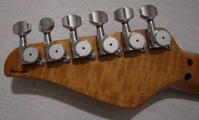 Гриф-болченый, по бокам клён, в середине ясень и вставки из палисандра, накладка тонированный ясень