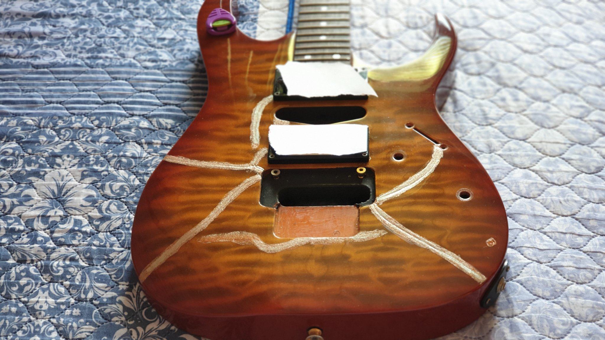 Заменено: звучки, поцы, переключатель, конденсатор, пикгард, гнездо джека, тремоло, пружины тремоло, грабля-зацеп.