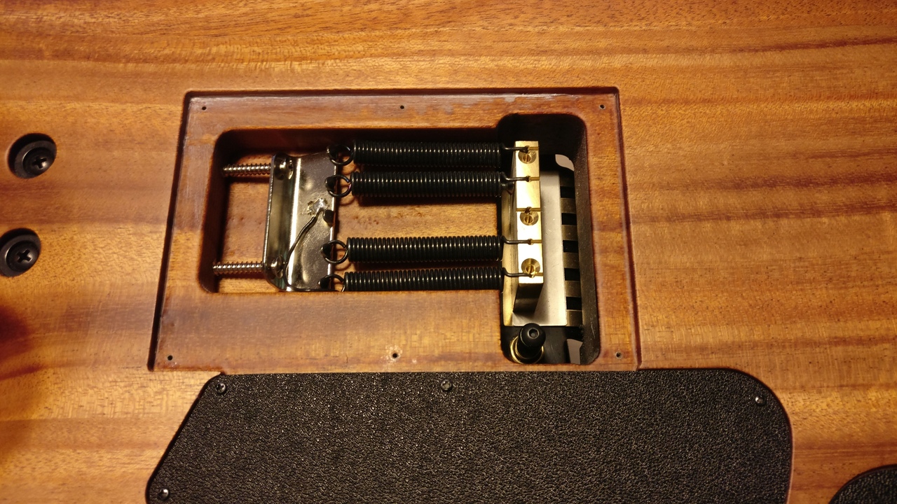 Разумеется, между тембрблоком и отсеком для пружин есть дерево. Просто обе выемки расположены близко друг к другу, поэтому крышки располагаются вплотную. Сама по себе конструкция и расположение тембрблока была разработана исходя из пожеланий к расположению элементов управления на лицевой стороне деки.
