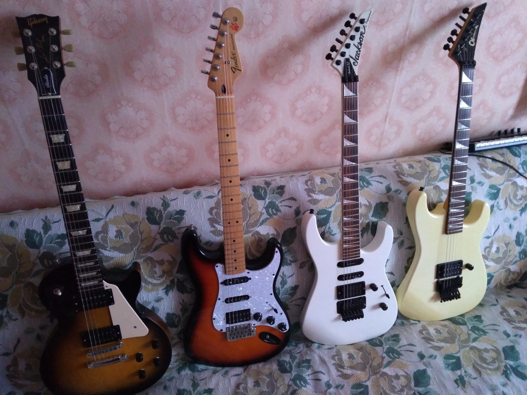 После некулюжего гибсона захотелось «метальную» форму. Появился Jackson Soloist XL Professional 94года. Красивая!!! Доступ к высоким ладам удобнейший. Гриф тонковат для меня. Датчик бриджевый и нековый поменял, тремсеттер стоял одно время, подпиливал лад выпиравший. Цена: б\у 40 тр [2017]