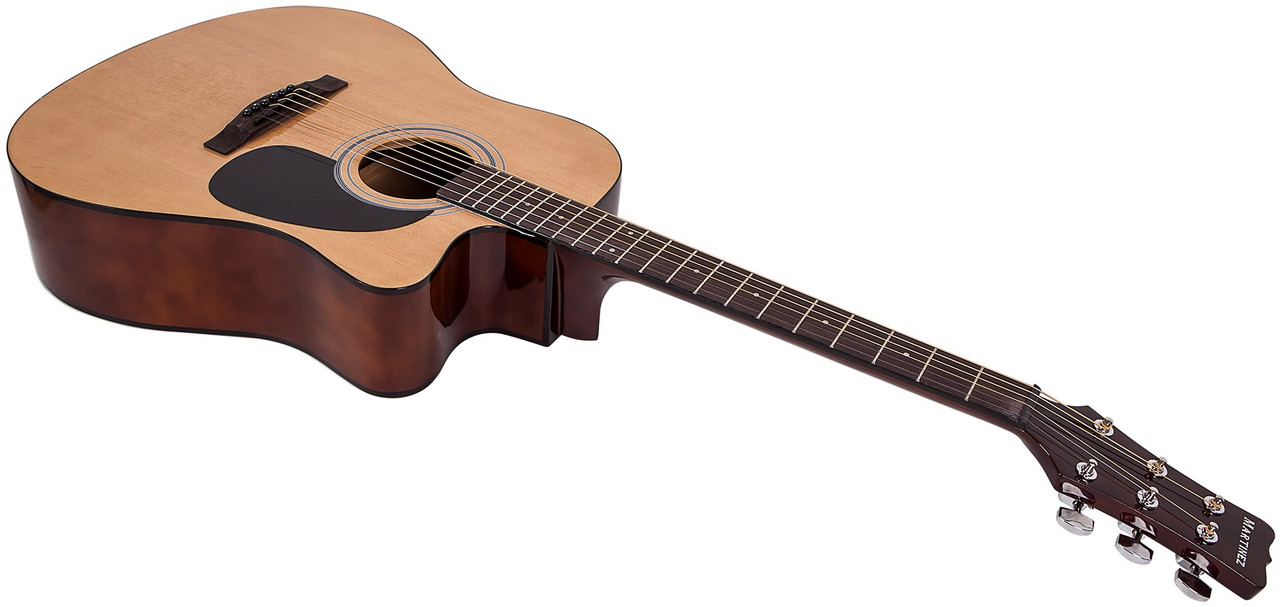 С нее и началось увлечение гитарой. Был период после расставания с дамой сердца, взрыв одиночества и творческое обострение)) пошел и купил акустику, почти спонтанно. MARTINEZ FAW-801 CEQ. Маленький продавец посоветовал не бросать при первых неудачах. Сравнить мне ее не с чем, как по мне хороший инструмент по звуку, но высота струн великовата, и играть мне было трудно особенно по началу. Подпиливал нижний порожек, стоят 9е струны. Звук мне нравится. Цена в то время: новая,по моему от 5-6 тр.[2010]