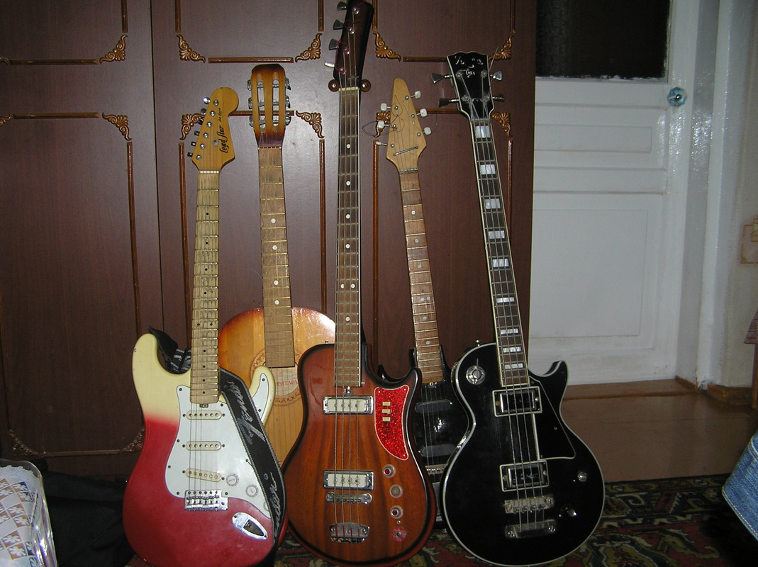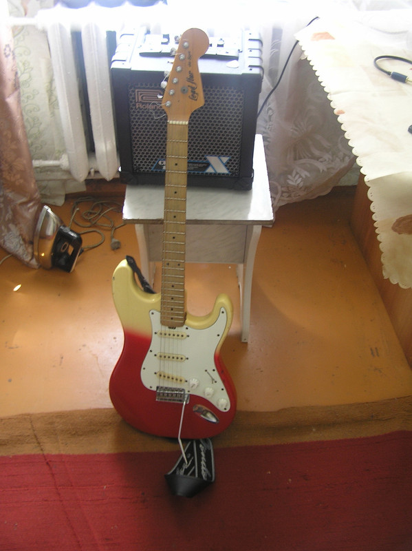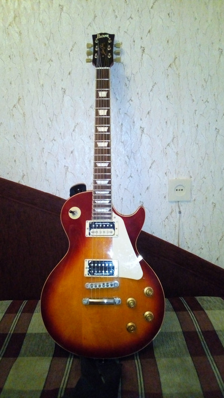Но голос у инструмента был,даже родные примочки через одну работали.Сама из ясеня,топ-фанера, ТОМ стоял на куске фанеры,то есть сам топ был полый. Гриф краснуха+палик,лады убиты, датчики с Эпифона,тяжелый. Был разобран в надежде довести до ума,но не сложилось, слил как конструктор, до сих пор жалею,что-то было в нем.