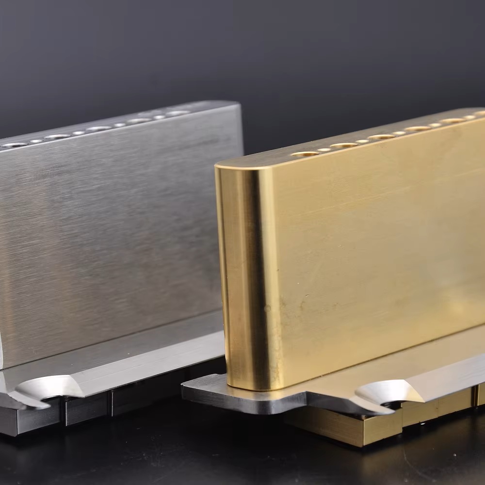 Больше всего угнетает бридж, ладно к двух опорному тремоло какие вопросы - бюджет. Но криво обработанные седла угнетают. Про винты молчу -ужас ужас. Если положить бридж то винты короткие, если настроить "подвесить" тремоло то 1 струна на бридже седлом упирается в станину уже на высоте 1,2 мм над 12 ладом.. Купил средне бюджетное китайское тремоло (аля Cort TR290) - еще не устанавливал.
