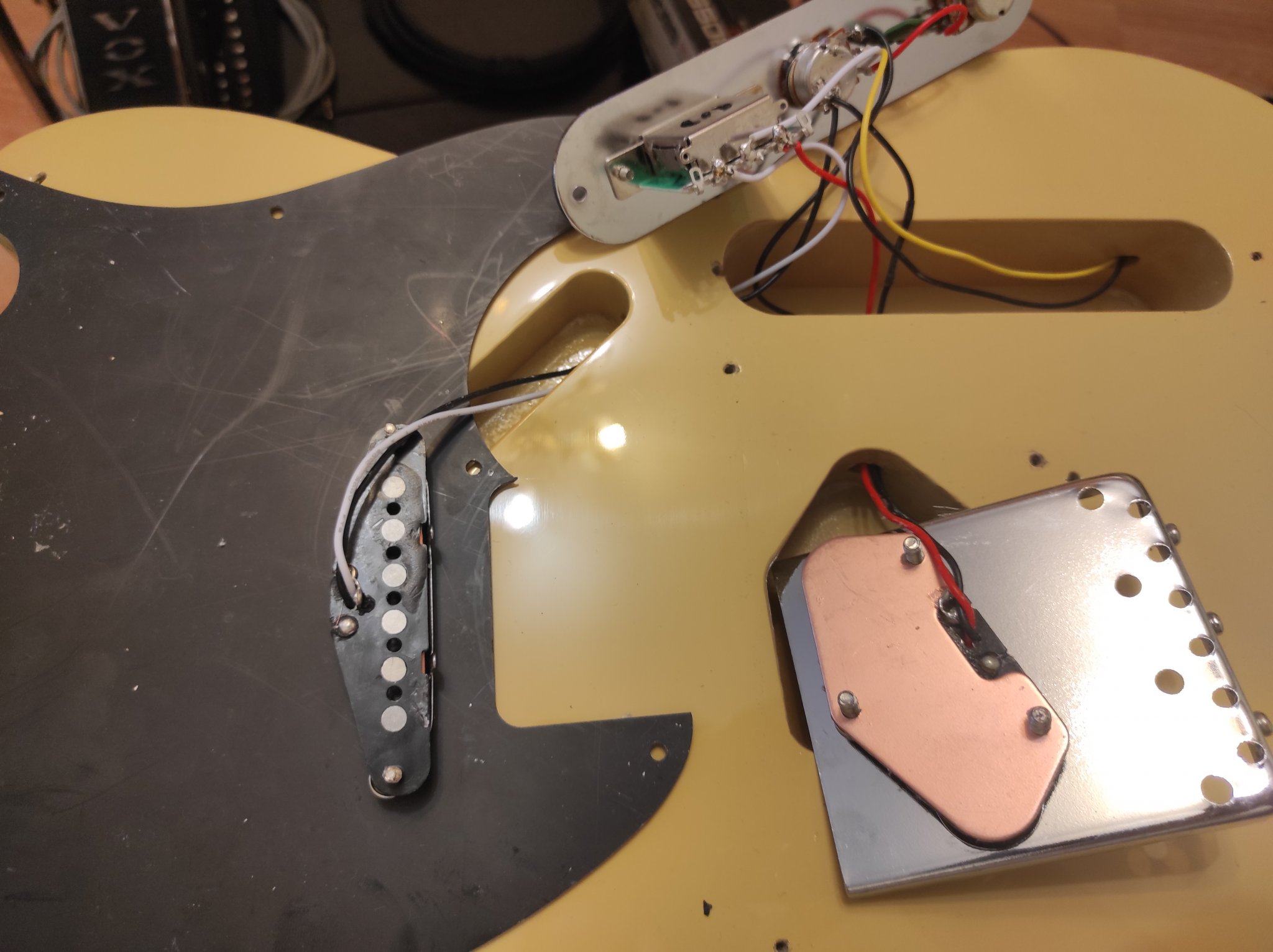 Радости ожидания небыло предела, но обнаружился косяк. Первую струну так и не смог отстроить по 12 ладу, двигать седло не позволяет опорный винт.