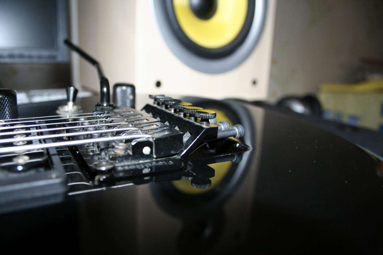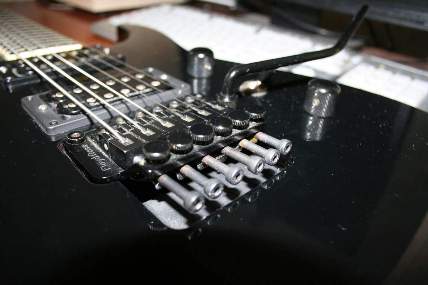 сегодня только получил гитару, строй натуральный, струны 9-46, начал проверять мензуру. Завышает на каждой струне. Вот падла! Начал регулировать, адово матерясь, ибо флойд первый раз. Отстроил. Заметил следущее: винты для зажима сухариков почти впритык к деревяшке, еще пол-миллиметра и флойд на повышение я не смогу использовать. Струны ни разу не новые на гитаре стояли. При задирании рычага на полную катушку (на повышение строя) струны ложатся на фиксирующие винты, которые регулируют мензуру каждой струны. Вследствие этого повышение тона идет всего лишь примерно на 2 тона.