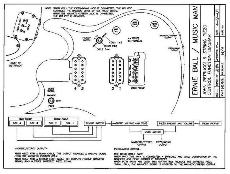 Там устроено немного сложнее - в первый вход, если подсоединен моно-джек идет микс сигнала, т.е. можно переключателем выбирать пьезо, магнитные датчики или их смесь, если включен стерео-джек, то можно развести на разные каналы пьезо и димарзио. Если воткнуты моно-джеки в оба входа, то в один пойдет магнитный датчик, а в другой - пьезо. А если стереоджек воткнуть во второй вход, то током убить может. (Шучу) Я не помню что получится, но у меня есть схема разводки датчиков, обязательно выложу.