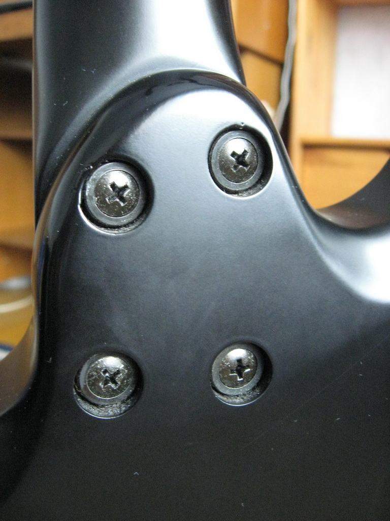 Изначально мензура была идеально настроена и все болты/шурупы хорошо закручены. Пайка надёжная и аккуратная. Претензии по сборке только к шурупам которыми топлок прикручен к грифу, на них сорваны прорези для отвёртки, а также к ретейнеру, который кривовато установлен.