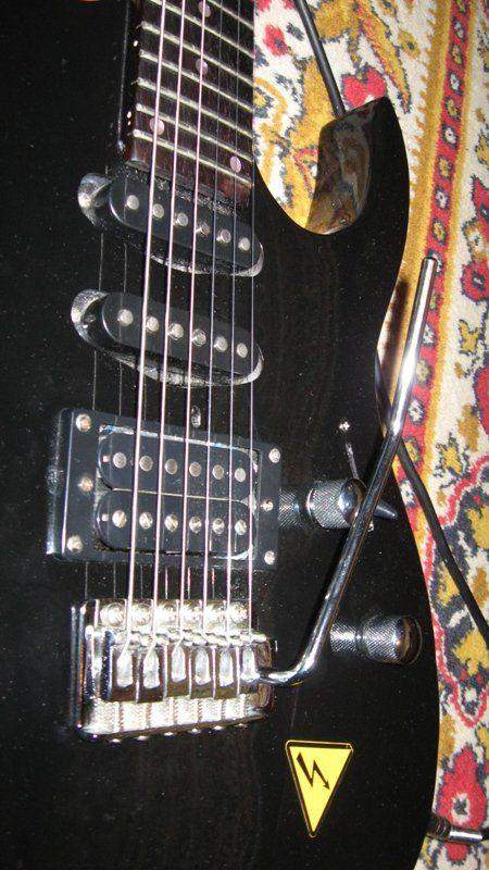 И ещё, на данный момент перепаяна вся электроника, заменён хамбакер на ди марзио(не помню модель), заменены поцентометры. И Машинка. Строй держит не железно, но хорошо. Вот.