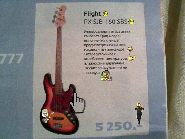 sbe77, так ведь правда радует) великое дело делают парни) с одной стороны из 10 человек купивших ее 7 навсегда наверное забьет на игру на гитаре по причине того, что она слишком крута, ну чтобы обуздать ее и укротить)) но зато 10 человек относительно легко купит гитару. Может 3 даже продолжит это грязное занятие)