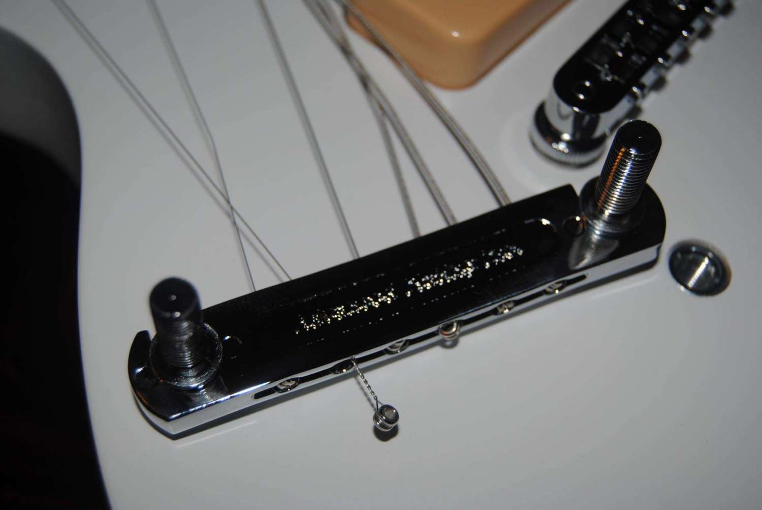 Многие жалуются, что стопбары у новых гибсонов изза плотной резьбы или толстого хромового покрытия не закручиваются примерно на 5-10мм. В нашем же случае все прекрасно - винты идут плавно, без люфта. Монетой в полдоллара как положено, я винты не осилил, но ослабив струны, отверткой закрутил все легко.