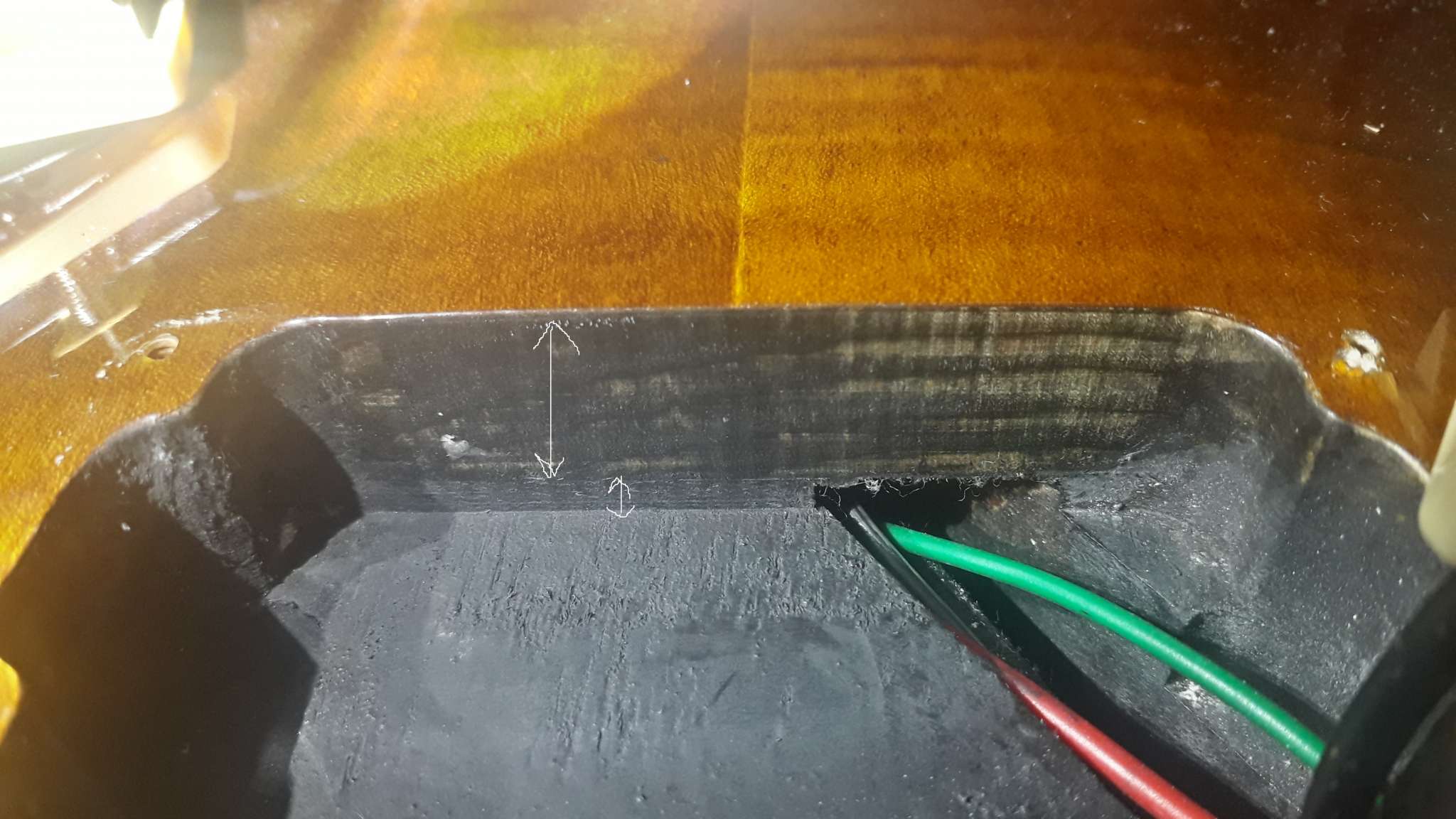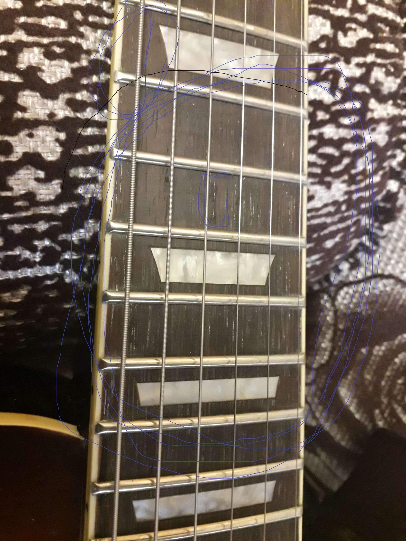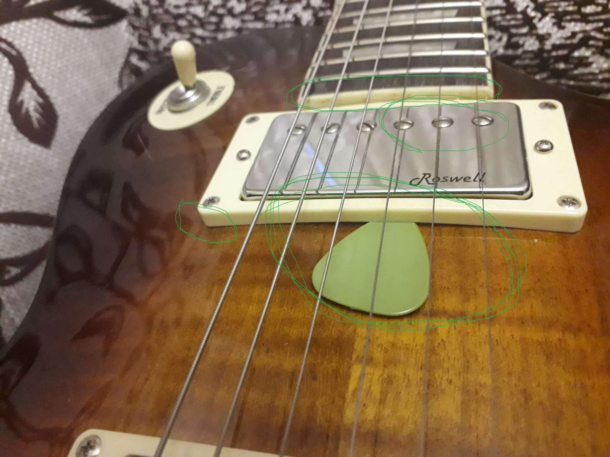 Открыл коробку всё цело повреждений нет, осмотрел и тут вылезли очень неприятные моменты для меня!, колки прикручены криво! накладка вся в клею плюс клеем заделаны большие поры в накладке! залакирована пыль от шлифовки ладов на канте, едем дальше-на канте накладки грифа не хватает лака на накладке и у ладов ,что только нет помойка, лады обгрызаны тупыми кусачками зашлифованы но дело это не исправило, прогиб грифа чуть ли не в обратную сторону, на тыльной стороне грифа бугорок а за бугорком ямка пальцами чувствуется , под рамку звукоснимателя пролазит медиатр , расстояние от струны до струны 50 мм а звукосниматели стоят 53 мм как так непонятно! при подтяжке бенде струна становится между стержнями звучков , кант возле нека то ли в соплях то ли так залакирован ужасно((( ах да снял крышку анкера она сзади выглядит как будто её плавили зажигалкой а потом она на помойке валялась до установки на лаке пера остались следы от неё!!