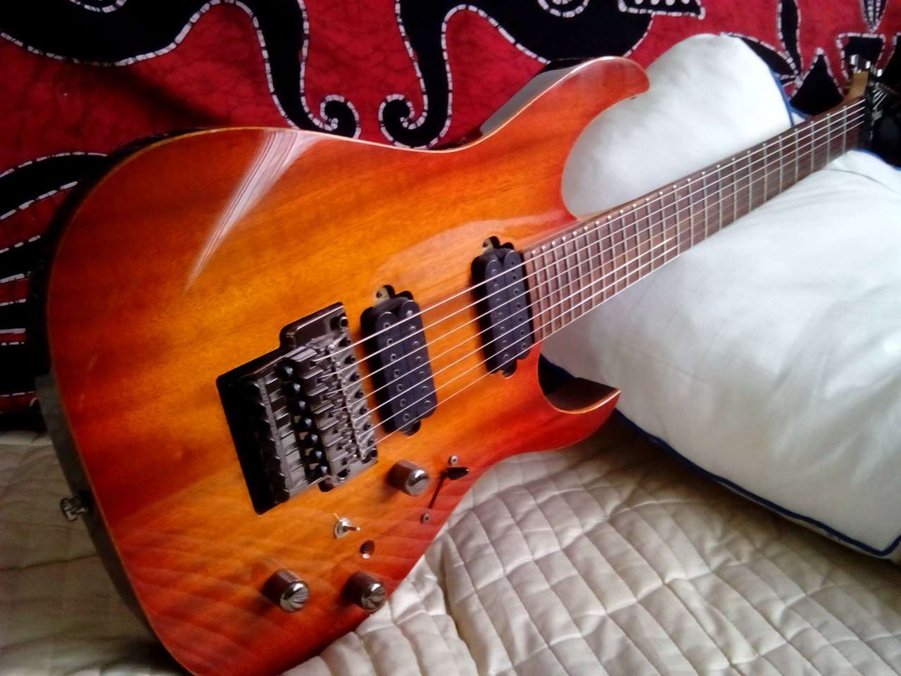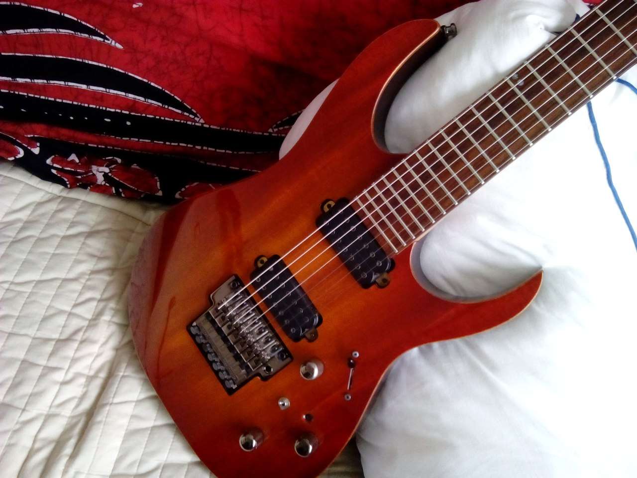 Придраться не к чему абсолютно. Всё чётко, красиво, удобно, гладко. Гитара ощущается очень сбалансированной и монолитной. Даже Cosmo Black с фурнитуры нигде не облез за 15 лет. Чуть-чуть шуршит потенциометр тона, но для гитары такого возраста, это простительно, я думаю. Lo Pro Edge держит строй мёртво. После покупки у предыдущего (первого) владельца, гитара пролежала 3 месяца, а потом в течение шести дней преодолела путь в 2000+ километров в фуре транспортной компании при температурах от +5 до -13 градусов по цельсию. После того, как я её распечатал, подкрутил микроподстройкой третью струну и больше ничего не настраивал. Вообще, судя по состоянию струн и по тому, что в чехле лежали три новые седьмые струны, гитара так и жила 15 лет: менялась седьмая и подстраивалась третья на машинке (шучу, конечно). Однозначно 10 баллов этому Ивану.