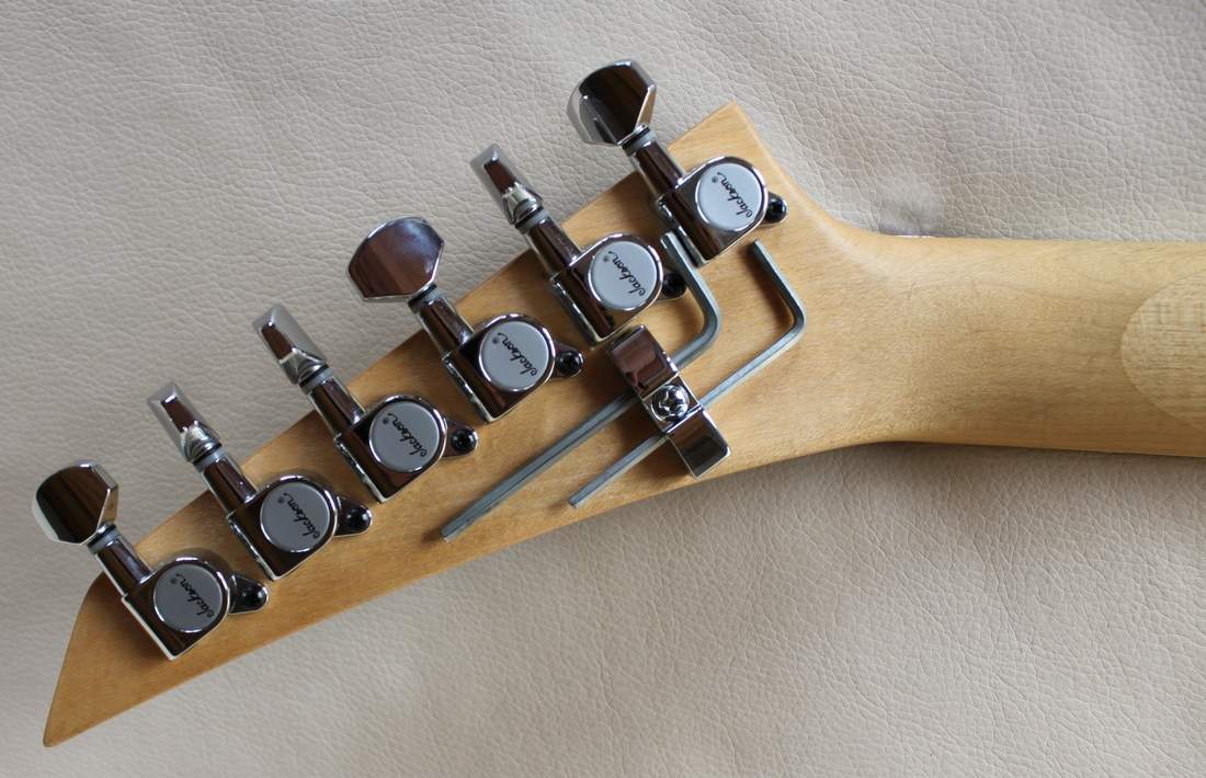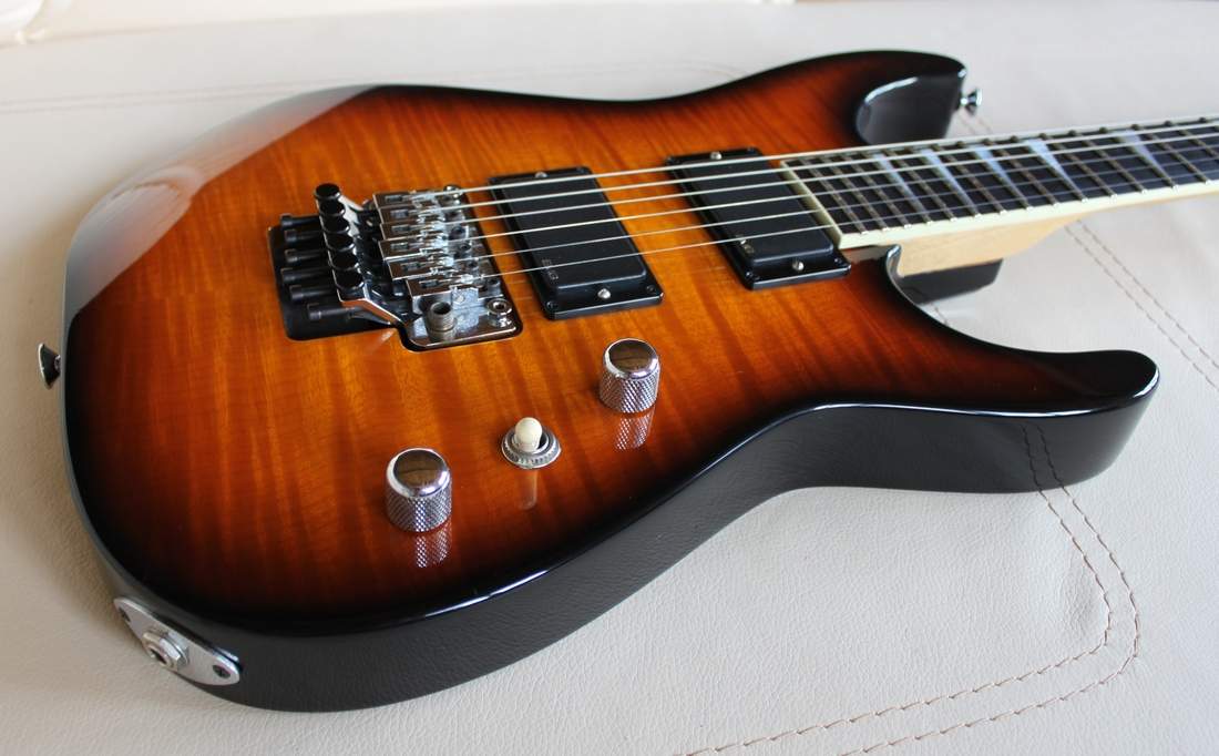 Трудно объективно оценить качество изготовления гитары, когда она б/у и когда ты не знаешь в каких руках она была до этого. Косяки есть. Некоторые появились в процессе эксплуатации предыдущими владельцами, некоторые видимо были с завода. В частности кончики ладов немного выпирают, в результате чего можно поранить пальцы и при извлечении флажолетов на 2, 3 ладу аля Даймбэг Даррелл первая струна цепляется за 3-4 лады. Это большой минус. Тумблер при переключении хамбов немного хрипит, но так как я им практически не пользуюсь (играю в основном на бриджевом датчике) особо не напрягает. В общем проблемы есть, но вполне себе решаемые с помощью прямых рук. Механика работает хорошо. Флойд Роуз выполнен более качественно, чем на корейском BC Rich, ибо в отличии от корейца хромовое покрытие нигде не слезло и пока тенденций к этому не обнаружено. Но вот строй держит, как мне показалось, чуток похуже. Но это уже физический износ. На блестящих хромированных поверхностях колков и потенциометров потертостей тоже нет.