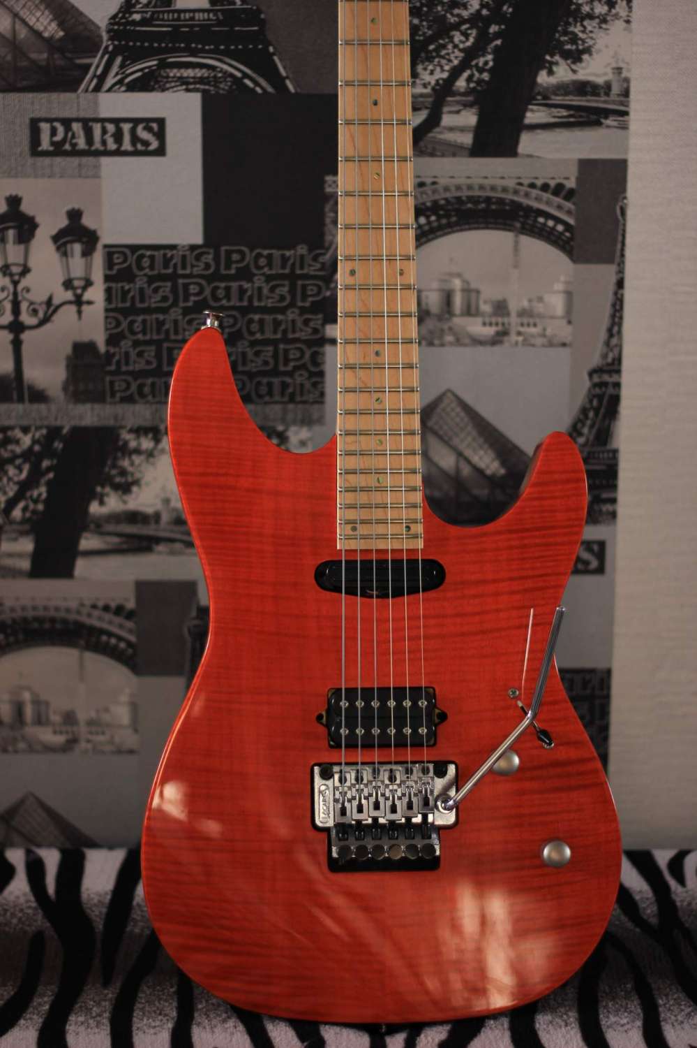Внешний вид / дизайн - 9/10Гитара выглядит действительно круто - яркий оранжевый цвет деки, кленовый гриф с маркерами из абаллона, хромированная фурнитура - все это притягивает взгляд. Топ из ААА-клена под тонким слоем лака смотрится великолепно. Фурнитура не сильно блестит из-за особенностей цвета и не портит общее впечатление. Дизайн хорошо выверен и подогнан, видно, что над ним основательно потрудились. Сказать откровенно, ее внешний вид и был одной из главных причин покупки - я не мог оторвать взгляд от этого тигра