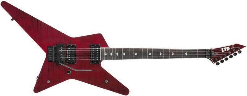Очень долго и безуспешно я искал инструмент подобного типа – с определенным форм-фактором, и определенным набором опций. В то время, когда я захотел более-менее профессиональный инструмент о фирменных гитарах в нашей стране мы могли только мечтать, были они далеко не у всех, и этим людям мы, простые смертные, очень завидовали… Поэтому тогда я имел мастеровой инструмент, который на тот момент достаточно полно отвечал моим требованиям. Время шло, «железный занавес» наконец-то рухнул, и к нам потоком потекли фирменные инструменты. Я думаю все помнят начало 2000-х, когда у нас стало очень много японских Джексонов, индийских Ибанезов и тому подобных гитар, по достаточно демократичным ценам. Но это все было не то, что я хотел, поэтому я продолжал играть на своей мастеровой гитаре. И тут в конце 2007 года на сайте ESP я наткнулся на именную модель Gus G. Там было все, что я хотел – два звукоснимателя «Сеймур Данкан» СХ-1 и ТБ-6, ориджинал флойд роуз и даже отсечка, отключающая по одной катушке у каждого из звукоснимателя. Ручки тона не было, что меня очень устраивало (я давно на своей мастеровой гитаре этот регулятор выпаял из цепи, все равно им не пользуюсь, а звук стал несколько чище). А самое главное – этот инструмент был именно той формы, которую я хотел еще из своего детства, конца 80-х, когда мне в руки попала немецкая книжка «Инструменты рока», где была изображена гитара такой формы – формы «звезды». В общем, я напрягся, напряг соответствующий магазин, и вот они мне привезли этот инструмент. Когда я за ним пришел, в первый момент меня поразила покраска гитары. Живьем гораздо красивее и «фирмовее», что ли, чем на картинках. Во-вторых звук. Я хотел инструмент не «визжащий», но и не «мясной». Я хотел именно серединистый, плотный и четкий звук с хорошими обертонами и вверх и вниз. Гитара звучала очень похоже на то, что я хотел. Несколько смутил гриф, он был явно шире (не толще, а именно шире) чем у ЕСП М2, которая имелась тут же для сравнения, так сказать. Но к этому я привык очень быстро, и теперь это мне очень удобно. В общем, радостно забрал я эту гитару домой, и было мне счастье.