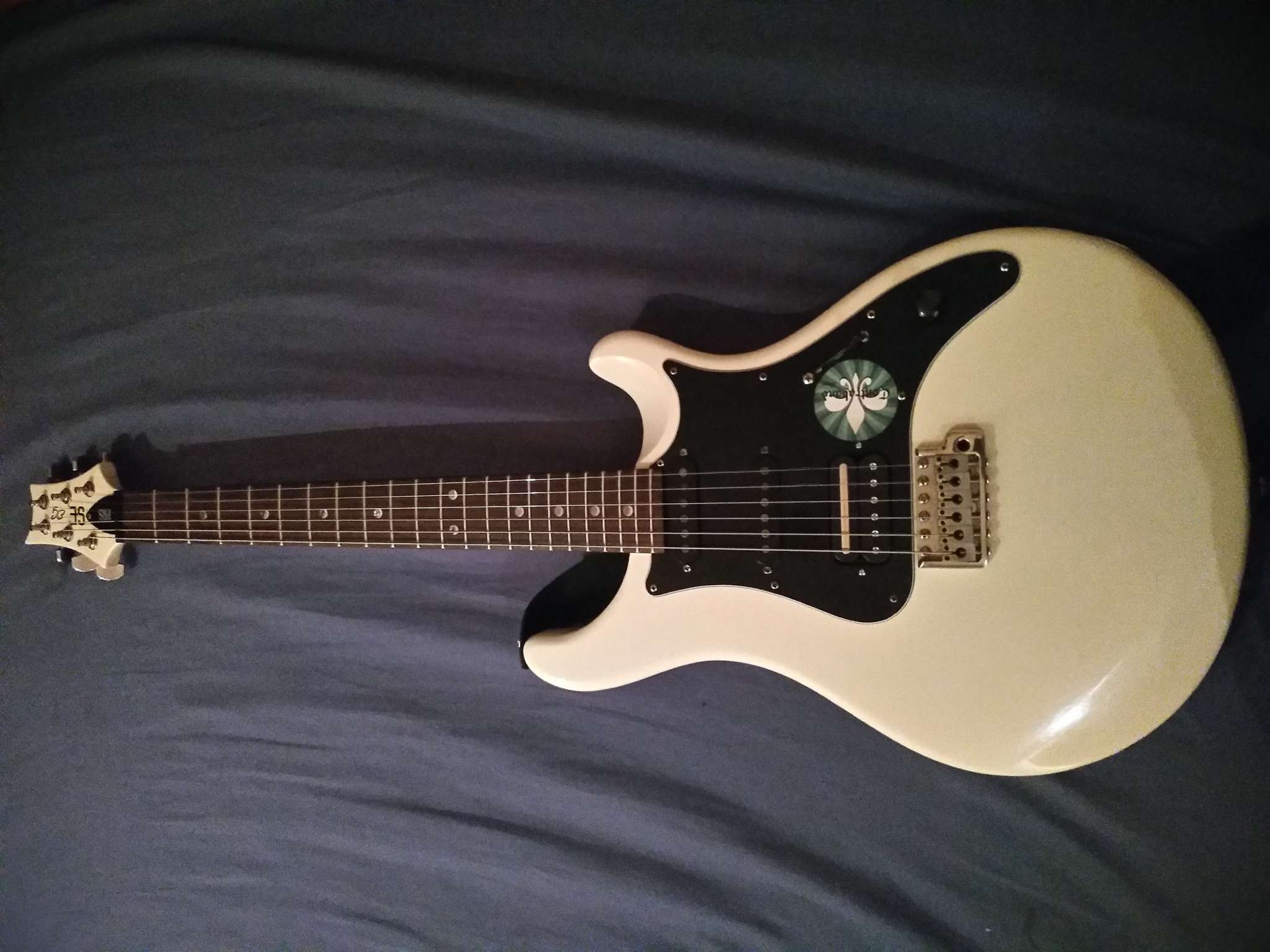 Сделано в Корее, 2004й годВнешний вид:9/10Субъективно, но для меня это очень красивый инструмент. Всегда нравились даблкаты от Пол Ред Смит, всегда нравились стратокастеры. Эта гитара-некий симбиоз между ПРС даблкат и классическим стратокастером. Форма даблката, обработка страта-никаких острых углов на корпусе, всё скруглено и зализано. Белый корпус, закрашенный наглухо, черная фальшпанель с черными датчиками, крутилками и свитчом. Выглядит элегантно. Голова грифа классическая, как на всех PRS. Нраица.