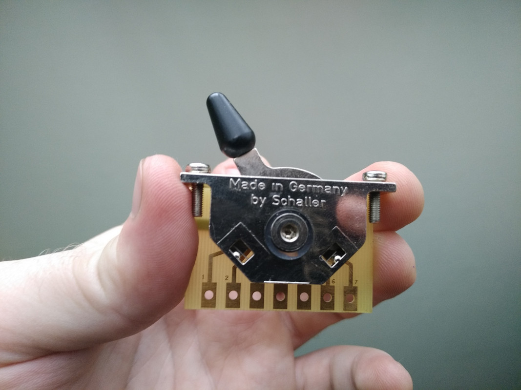 Обширный UPDATEСвитч был заменен на Schaller 105SFК работе свитча в последнее время были претензии. Влажный китайский климат ушатал и его тоже. Возможности разобрать свитч и устранить неполадки не было, т.к. конструкцией оного не предусмотрена возможность его разбора без деформации ножек, которые держат текстолитовую плату. Ломаешь ножки-теряешь возможность собрать свитч обратно. Постоянно забрызгивать внутрь WDшку-тоже не выход. У Шаллеровского свитча конструкция предусматривает возможность его разборки и чистки.