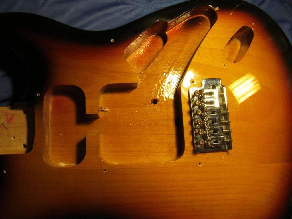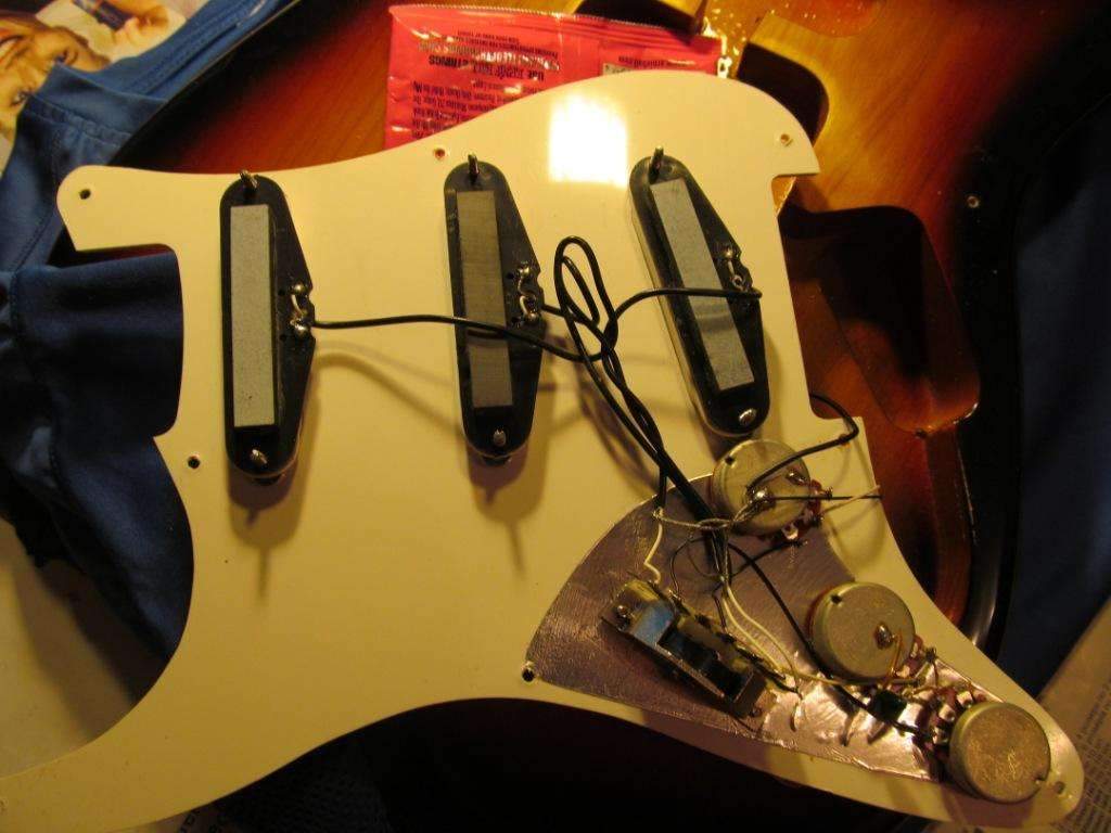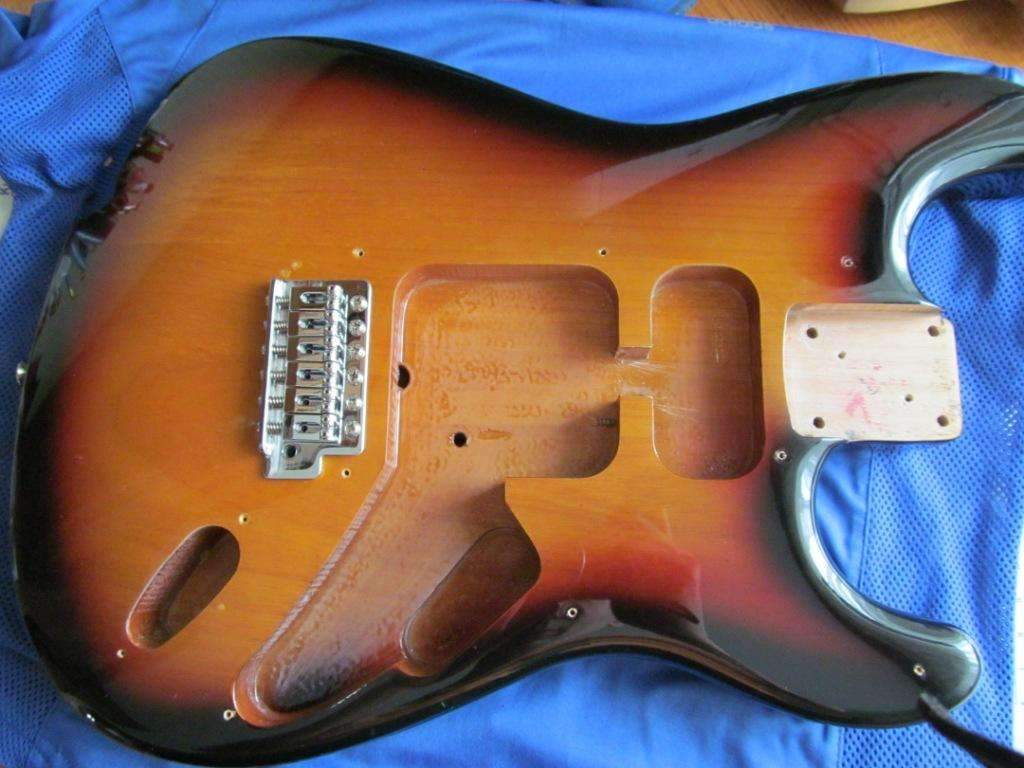 Фрезеровка нормальная, пикгард однослойный люблю такой. Потенциометры бы еще поменять на Dimarzio хотя бы, про CTS уж молчю дорого. Синглы если не все менять, то хотя бы один в нек или мидл фирменный. Цинковый сустейн-блок это нормально, главное не силумин.