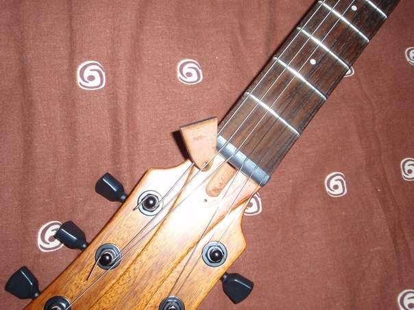 интересное примечание: сзади струнодержателя внизу дополнительные отверстия для крепления струн в стиле бас-гитары, я попробовал, тембр и атакастановятся похожими на телекастер но окончательно пропадает отдача по низко-средним частотам от корпуса...