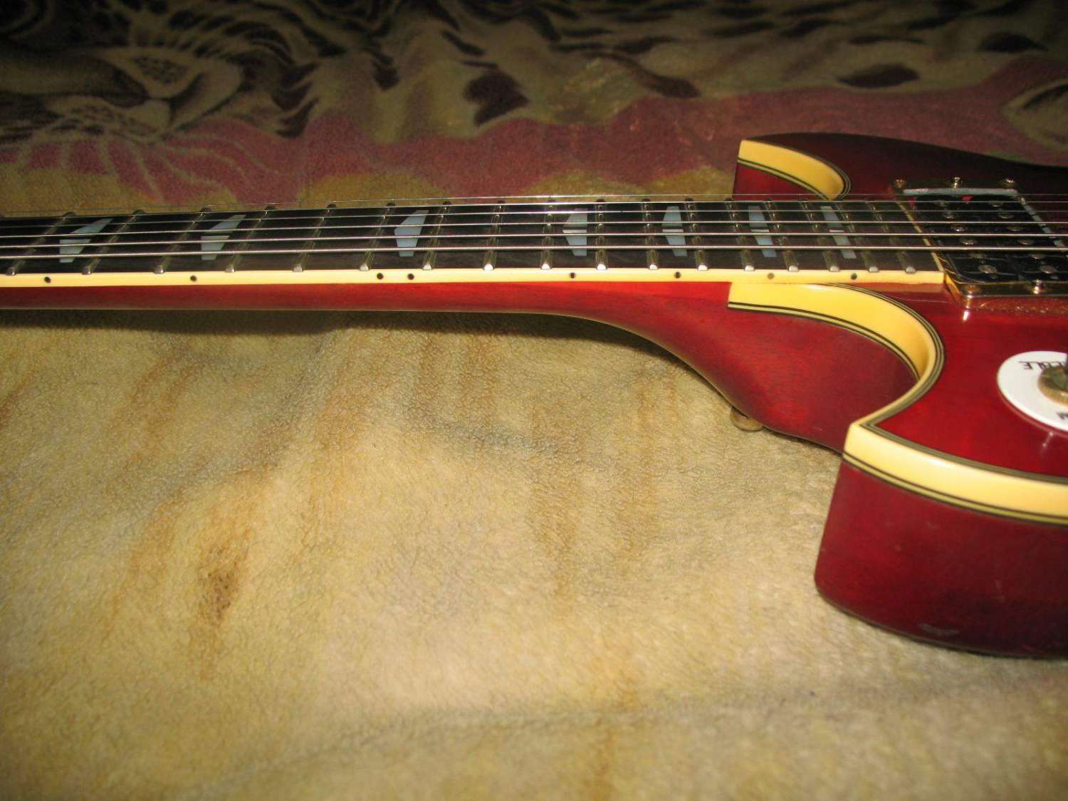 По функциональности:так как я пр. всегда играл на "Лес Полах" всё в этой гитаре удобно и близко моему сердцу. Гриф поуже и поизящней, чем у большинства подобных гитар. Играть удобно. Рука не устаёт, а скошенная "пятка" облегчает доступ "за 12-й лад." Как уже упоминалось, именно, у этой гитары нет отсечек хамбов в синглы. Это, пожалуй, минус. Но дело поправимое. Чуть позже поставлю пуш-пуловые потенциометры..Посмотрим, что получится.